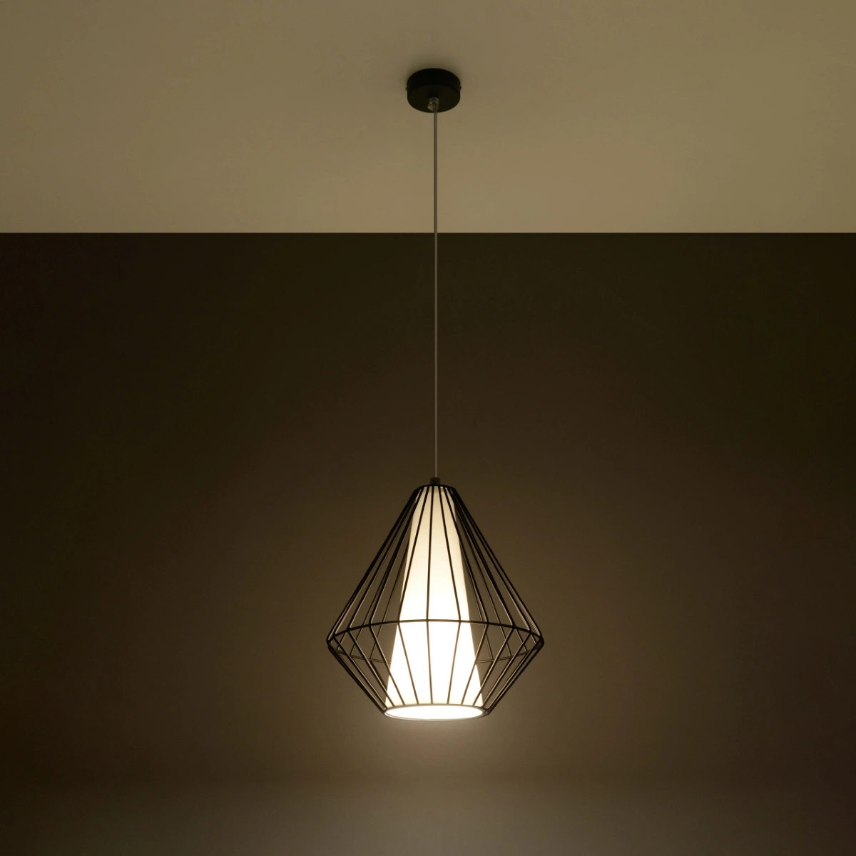 Závěsné svítidlo DEMI je volbou pro ty, kteří dávají přednost jednoduchosti a výraznému stylu. Jeho geometrický tvar v hluboké černi skvěle zapadne do moderních aranžmá — ať už v loftovém, nebo industriálním stylu. Polomatný povrch dodává lampě jemnou eleganci, zároveň však nezahlcuje prostor, ale harmonicky jej doplňuje. Zavěšená nad jídelním stolem nebo v centru obývacího pokoje vytváří útulné a funkční osvětlení.