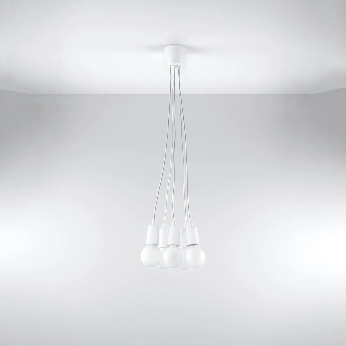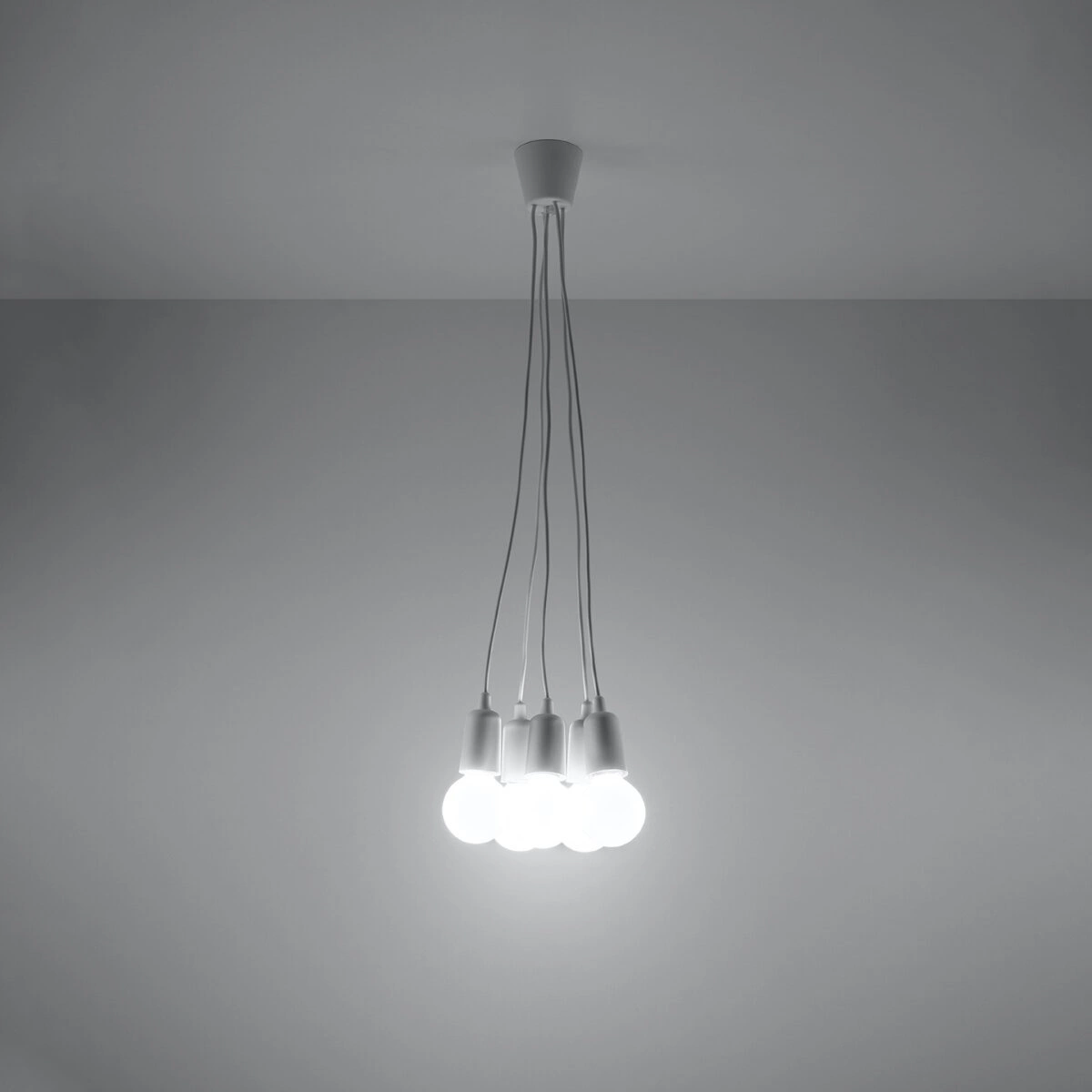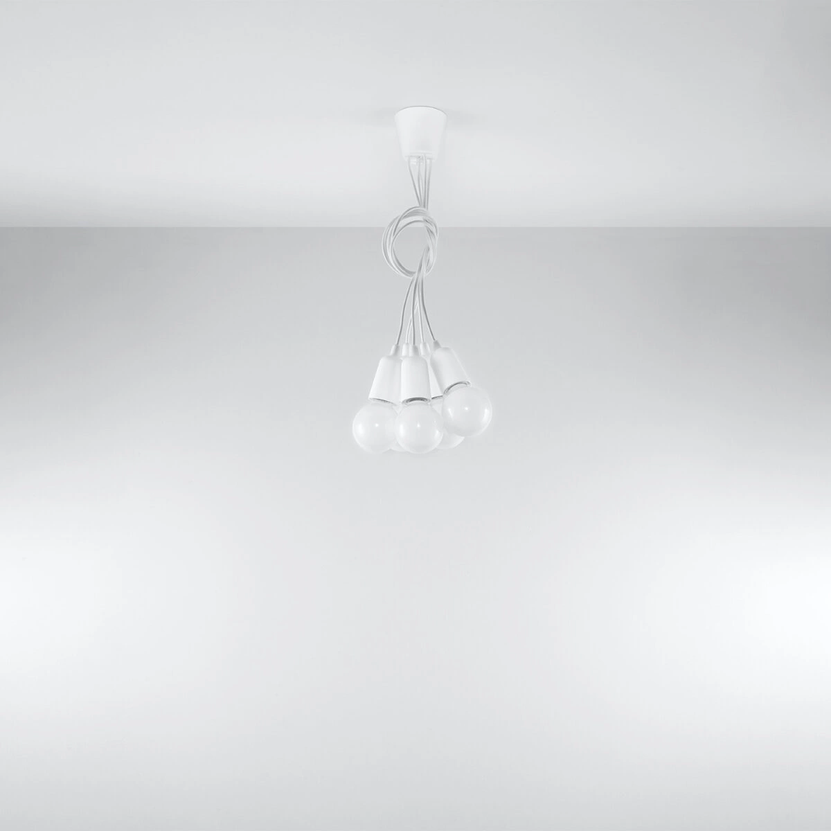 Lampa Diego je k dispozici v mnoha různých variantách. Můžetesi vybrat barvy lampy, které mohou být tlumené (bílá, černá, šedá), ale také velmi výrazné a živé (žlutá, oranžová, zelená). Kromě barvy pouzdra a kabelu lze naadrese zvolit také počet žárovek ve svazku. K dispozici jsou varianty, kdy je lampa samostatná nebo seskupená po 3 nebo 5. Délky kabelů jsou nastavitelné a záleží na vás. Kromě toho lze lampu svázat do oblíbeného uzlu, který interiéru dodá neokázalý nádech.