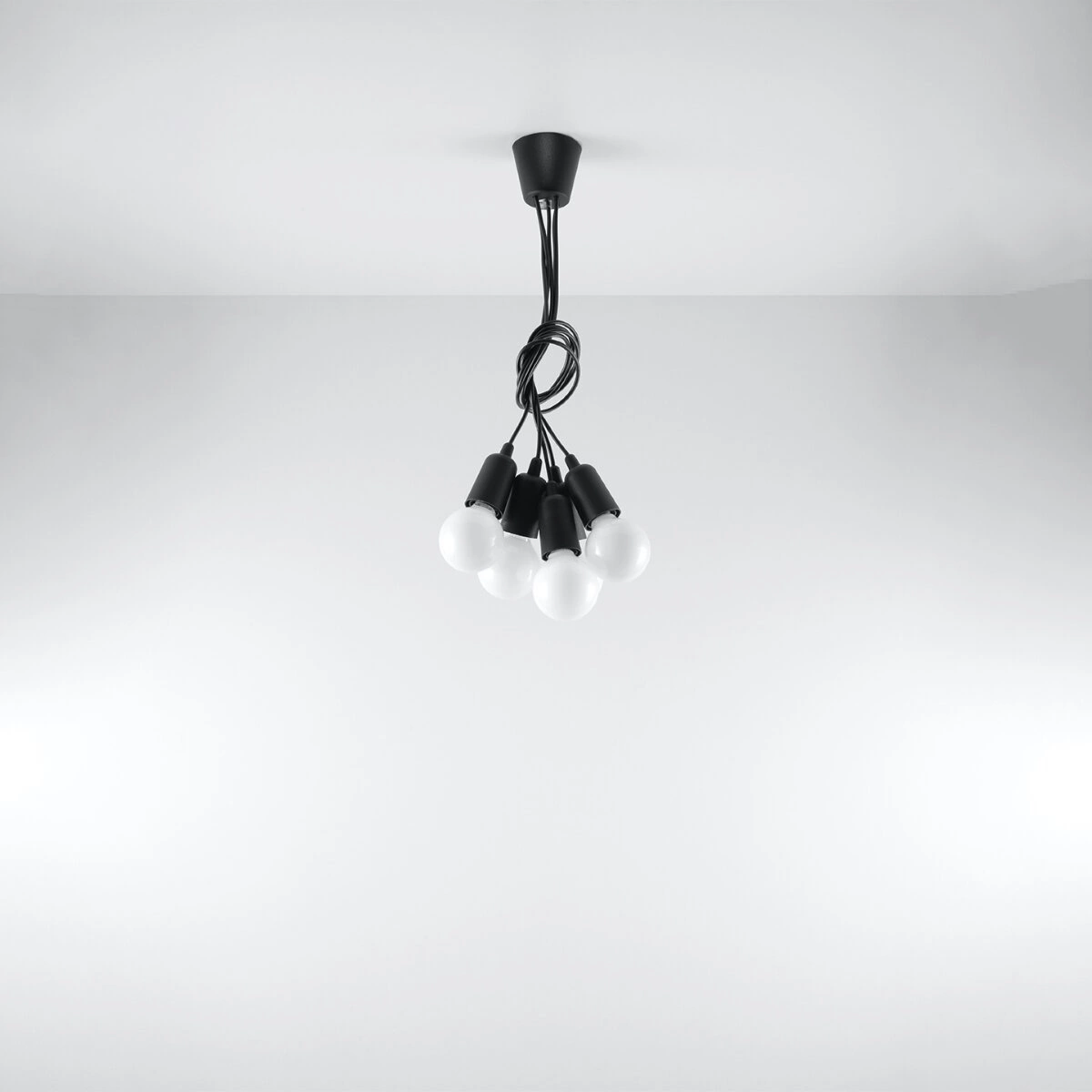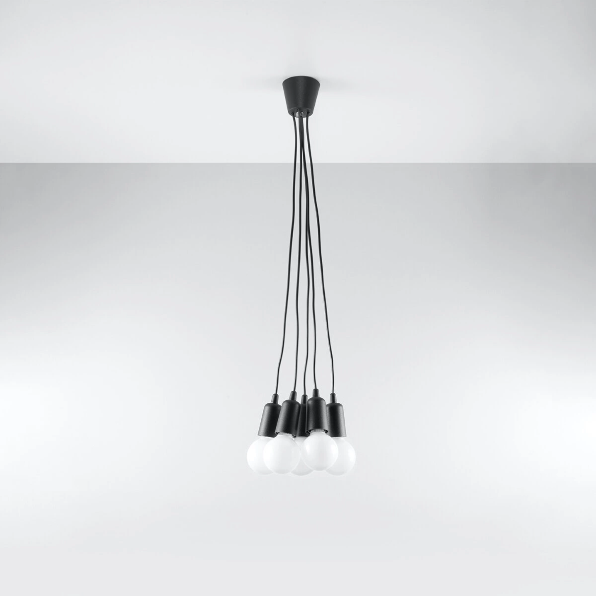 Lampa Diego je k dispozici v mnoha různých variantách. Můžetesi vybrat barvy lampy, které mohou být tlumené (bílá, černá, šedá), ale také velmi výrazné a živé (žlutá, oranžová, zelená). Kromě barvy pouzdra a kabelu lze naadrese zvolit také počet žárovek ve svazku. K dispozici jsou varianty, kdy je lampa samostatná nebo seskupená po 3 nebo 5. Délky kabelů jsou nastavitelné a záleží na vás. Kromě toho lze lampu svázat do oblíbeného uzlu, který interiéru dodá neokázalý nádech.