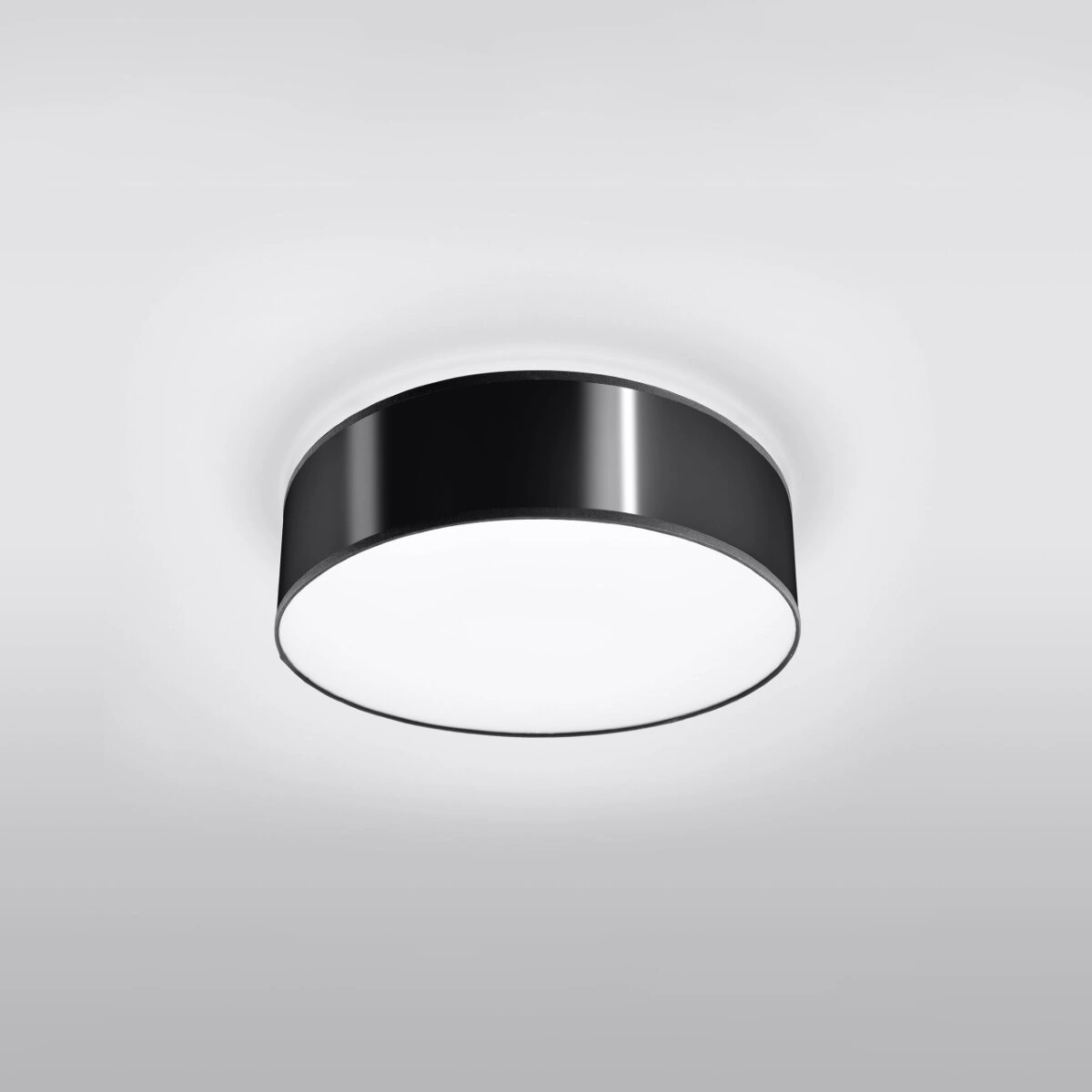 Stropní kulatý černý plafon Arena 35 od značky Sollux je moderní osvětlení, které spojuje minimalistický design s univerzální funkčností. Vyrobený z odolného plastu v hlubokém, matném odstínu černé, plafon o průměru 35 cm a výšce 11 cm skvěle poslouží jako efektivní zdroj světla do obývacího pokoje, kuchyně nebo ložnice. Přizpůsobený pro dvě žárovky E27 s výkonem až 60W umožňuje snadný výběr barvy a intenzity světla přesně podle vašich individuálních potřeb.