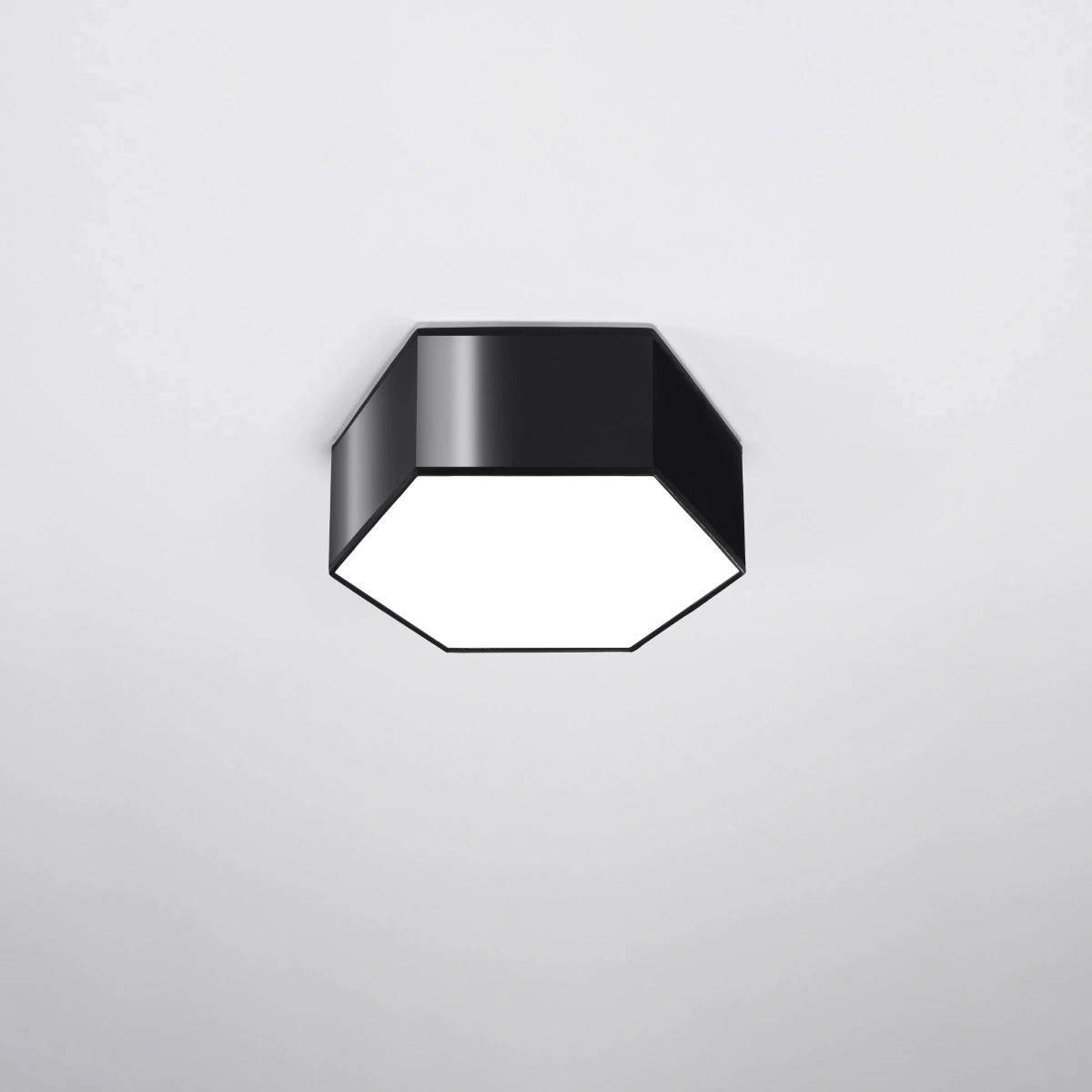 Stropní svítidlo Sunde od značky Sollux Lighting je moderní osvětlení, které zaujme geometrickým tvarem a vysokou funkčností. Vyniká šestihranným designem, kvalitním provedením z odolného PVC a univerzální černou barvou. Díky dvěma paticím na žárovky E27 a rozměrům 26,5×30,5×11,5 cm je ideální jako hlavní zdroj světla do obývacího pokoje, kuchyně nebo ložnice a dokonale podtrhne industriální nebo loftový styl vašeho interiéru.