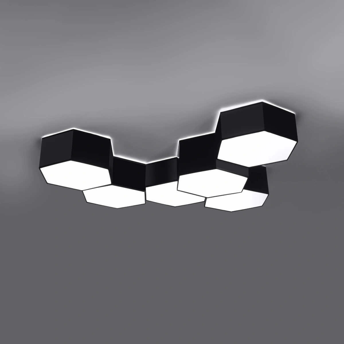 - moderní šestihranný plafon – upoutá pozornost geometrickým designem