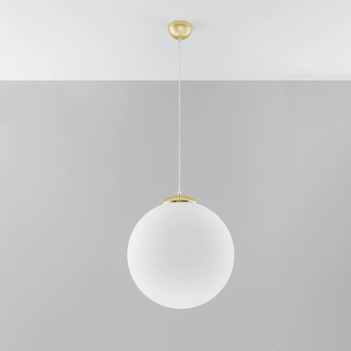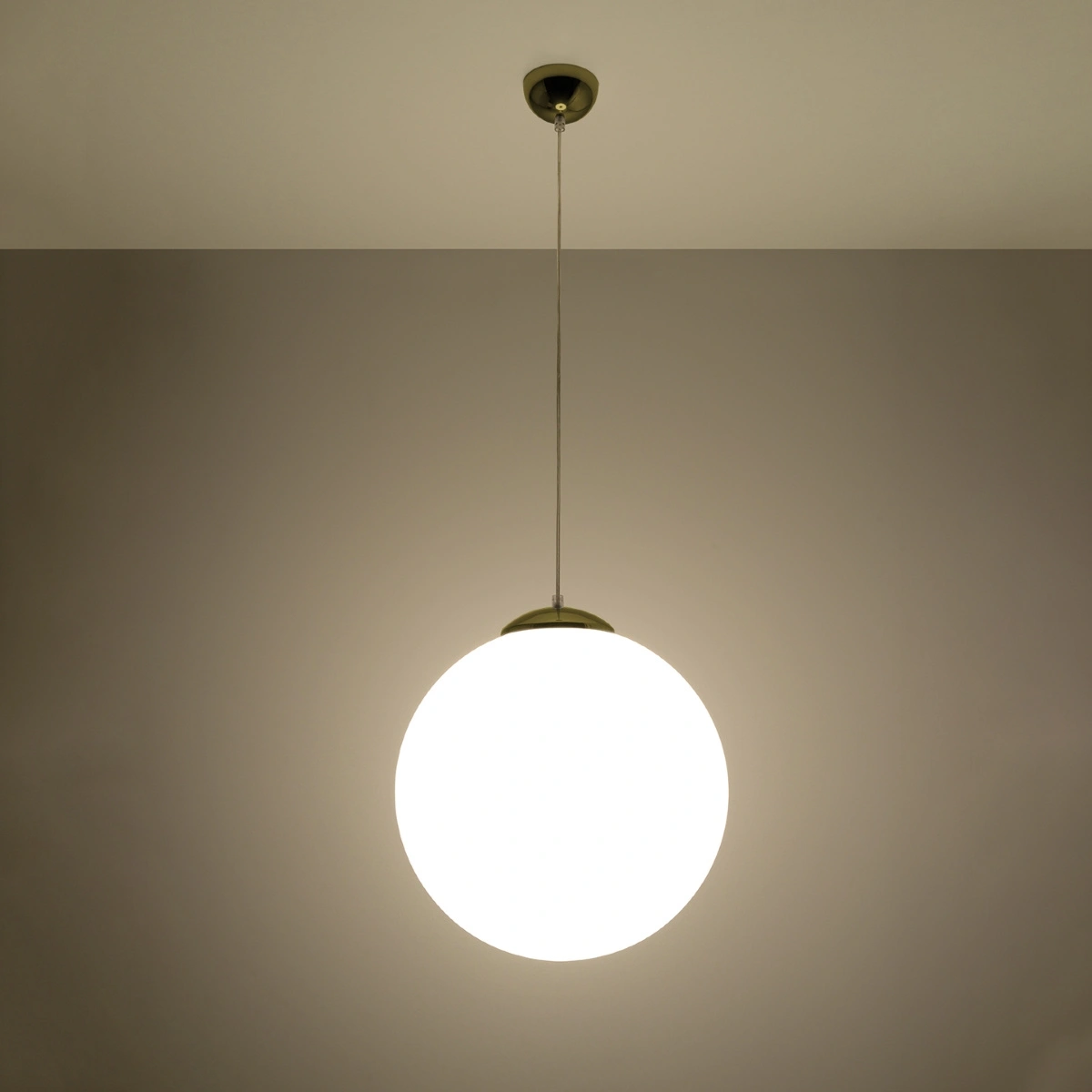 Závěsné svítidlo koule UGO 40 od značky Sollux Lighting je spojením moderního designu a nadčasové elegance. Vyrobené z mléčně bílého skla a doplněné o zlaté ocelové detaily, zaujme svým geometrickým tvarem o průměru 40 cm i praktičností. Zavěšení s nastavitelnou délkou až 130 cm umožní využít lampu jako hlavní osvětlení v obývacím pokoji, jídelně, nad jídelním stolem, ale také v kuchyni nebo nad ostrůvkem, kde vytvoří výrazný dekorativní prvek.