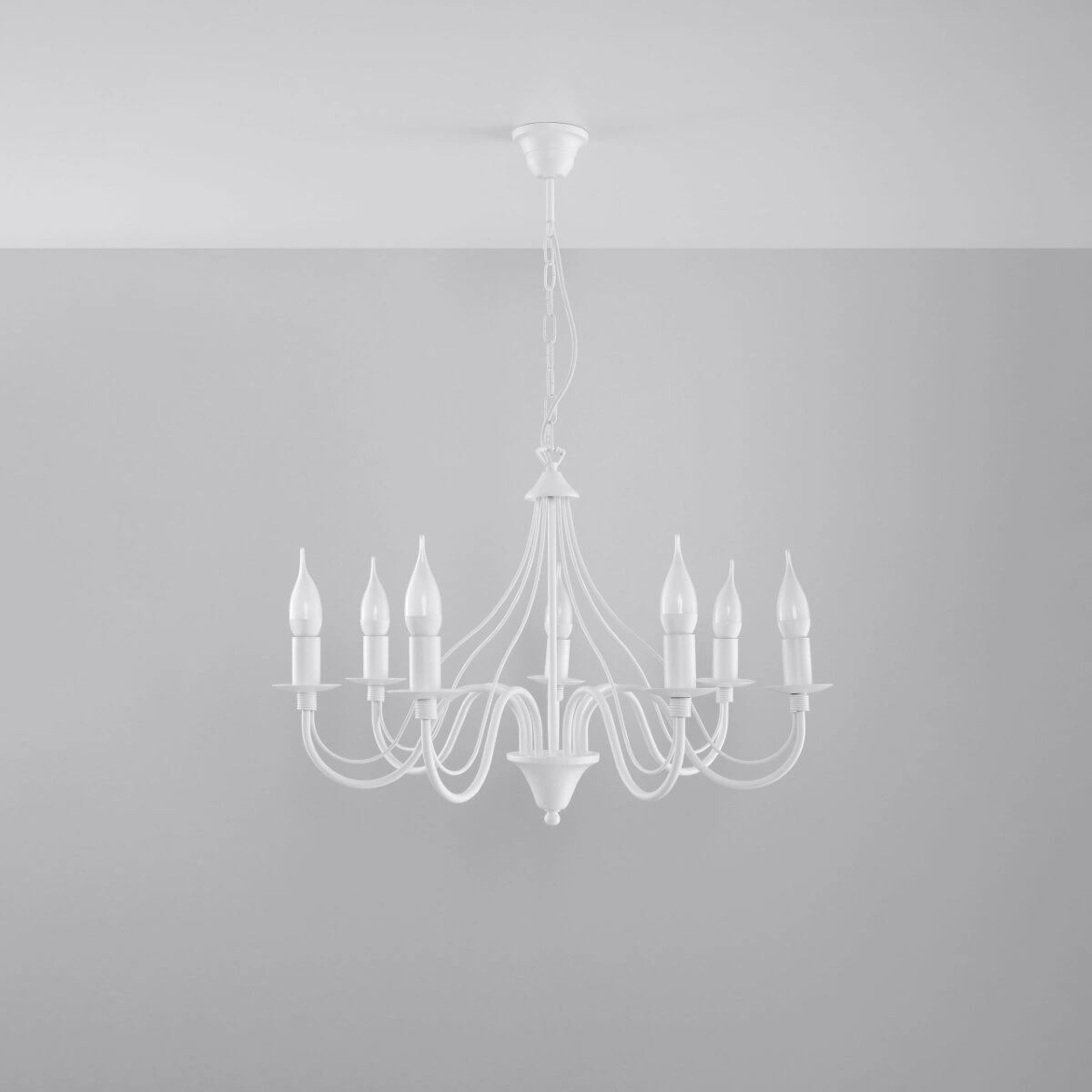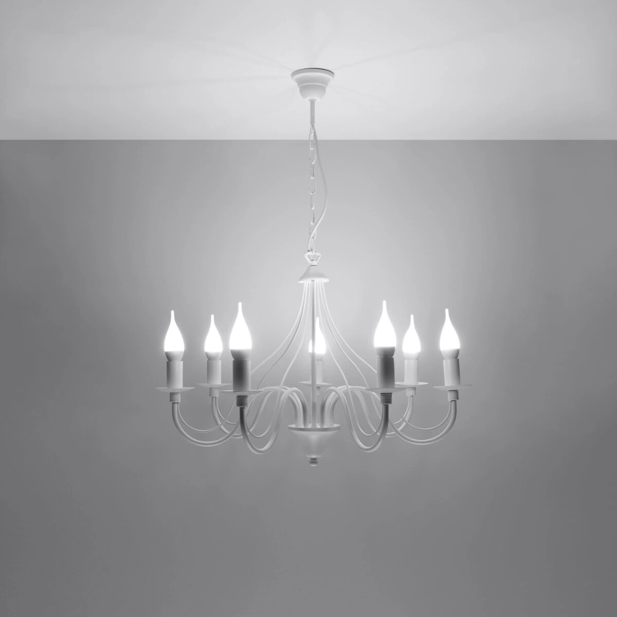Robustní kovové provedení zaručuje lustru Minerwa 7 vysokou odolnost proti poškození a snadnou údržbu. Bílá barva nejen prosvětlí prostor, ale také jej opticky zvětší, což oceníte zejména v menších místnostech. Model je určen pro sedm žárovek E14 s výkonem až 40W každá, takže si můžete nastavit intenzitu světla dle vašich potřeb a nálady.