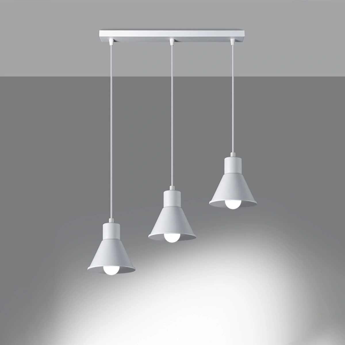 Moderní závěsná lampa TALEJA 3 bílá od značky Sollux je minimalistickým řešením pro současné interiéry, vyrobeným z odolné oceli v elegantním, matném bílém provedení. Tři světelné zdroje umístěné v různých výškách zajistí perfektní osvětlení prostoru, díky čemuž je tato lampa ideální volbou jak do obývacího pokoje, tak nad jídelní stůl či do kuchyně. Výška lampy je 120 cm, šířka 14 cm a délka 45 cm – tyto proporce zaručují optimální rozptyl světla bez zbytečného zahlcení interiéru.