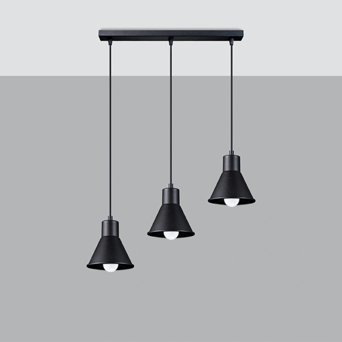 TALEJA 3 je závěsné svítidlo navržené pro milovníky jednoduchosti a funkčního industriálního stylu. Matná černá a štíhlý tvar stínidel podtrhnou charakter moderní kuchyně, jídelny nebo obývacího pokoje a harmonicky splynou s okolím. Kovová konstrukce dodává interiéru industriální nádech a zároveň zaručuje dlouhou životnost. Ať už lampu umístíte nad jídelní stůl nebo kuchyňský ostrůvek, lustr TALEJA 3 okamžitě zaujme vaše hosty i domácí.