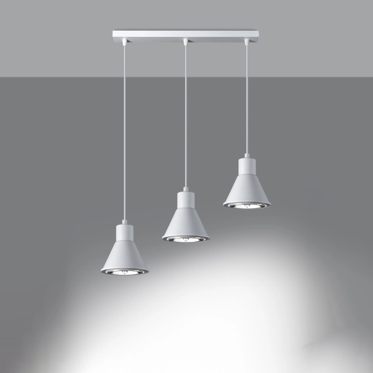 Závěsné svítidlo TAZILA 3 od značky Sollux Lighting je moderní stropní osvětlení s minimalistickým designem, které zaujme bílým kovovým provedením a třemi lineárně uspořádanými světelnými zdroji. Díky kompaktním rozměrům – výška 120 cm a šířka 45 cm – se perfektně hodí jak jako lampa nad kuchyňský ostrůvek, tak jako lustr do obývacího pokoje či jídelny. Robustní ocelová konstrukce a promyšlený design zaručují nejen atraktivní vzhled, ale i dlouhou životnost a funkčnost.