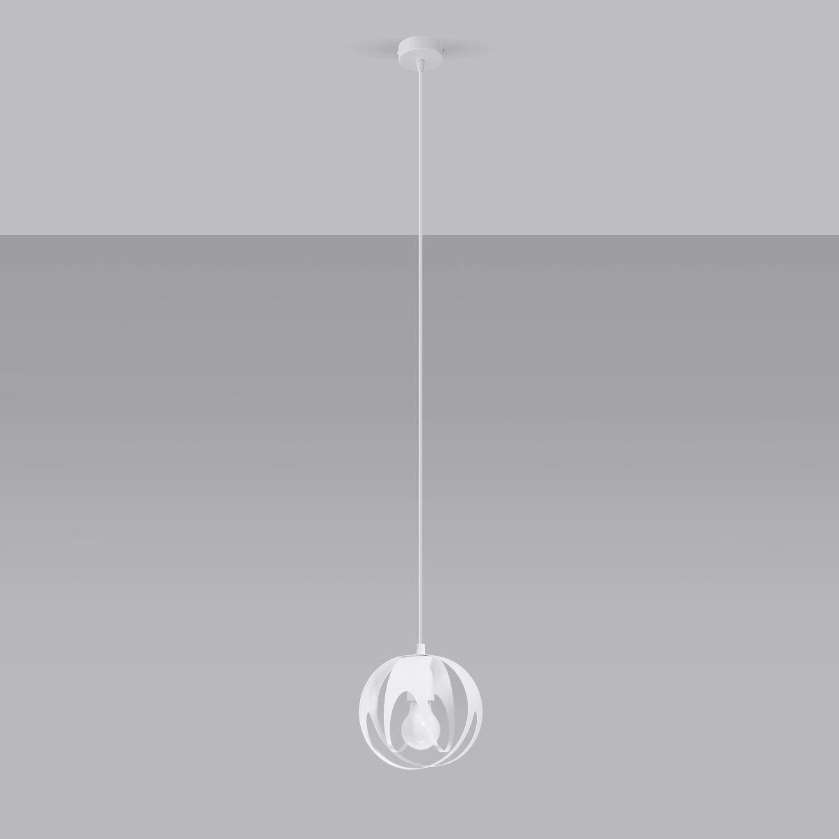 Stropní závěsná lampa bílá koule Tulos od značky Sollux Lighting je moderní osvětlení, které dokonale podtrhne charakter vašeho interiéru. Model s výškou 125 cm a průměrem 16 cm je vyroben z odolného kovu v matné bílé barvě, což zaručuje nejen dlouhou životnost, ale i minimalistický a elegantní vzhled. Ideální jako stropní svítidlo do obývacího pokoje, jídelny nebo kuchyně – skvěle vynikne nad jídelním stolem i nad kuchyňským ostrůvkem.