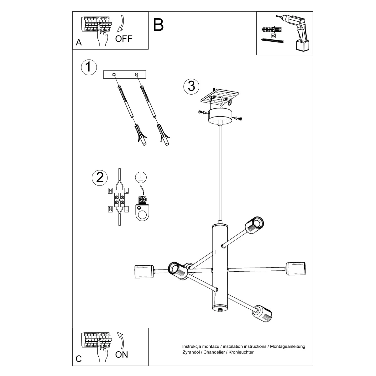 Praktické rozměry – šířka a hloubka 60 cm a výška 85 cm – zajišťují, že lustr DUOMO 6 skvěle vynikne jak ve vysokých loftech, tak ve standardních bytech. Bez problémů jej využijete jako lampu nad stůl, centrální světlo obývacího pokoje nebo originální lustr do ložnice. Díky 6 paticím E27 si můžete svobodně vybrat zdroj světla – LED, filamentové či klasické žárovky – a přizpůsobit barvu i výkon svým potřebám.