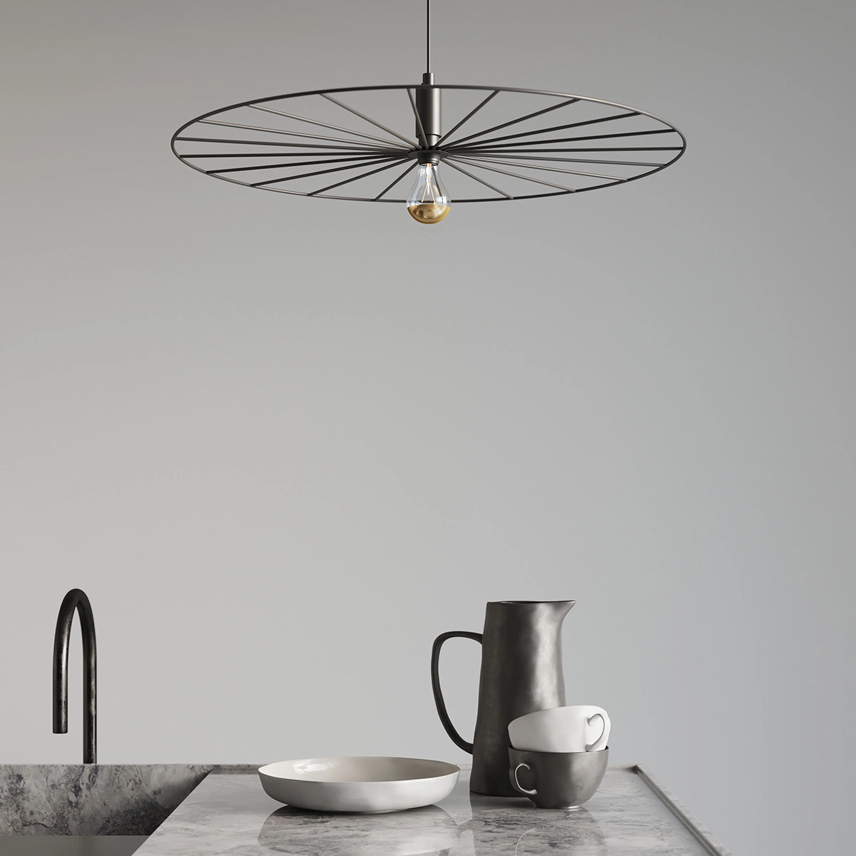 Minimalistický a zároveň výrazný vzhled lampy SIRKEL 45 černé okamžitě přitáhne pozornost a stane se dominantním dekoračním prvkem. Otevřená konstrukce s tenkými ocelovými prvky vytváří působivou hru světla a stínů, což podtrhuje industriální atmosféru místnosti. Tento loftový lustr skvěle ladí jak s moderními interiéry, tak i s klasickými prostory, kam vnese dávku originality a neotřelého stylu.