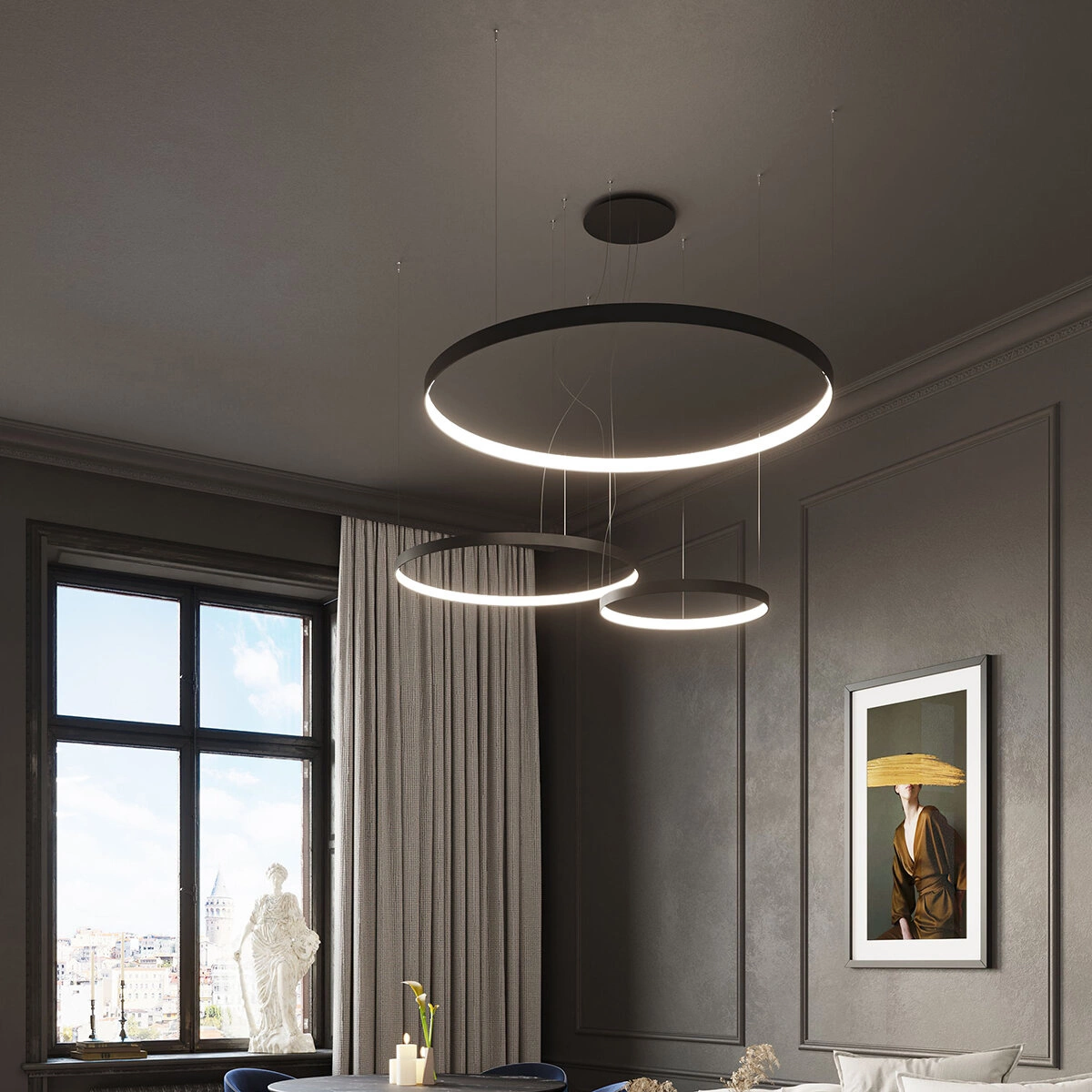 Industriální LED lustr RIO 78 černý okouzlí jednoduchostí a elegancí, dokonale se hodí do moderních i loftových interiérů. Kulatý tvar a vzdušná konstrukce dodávají svítidlu lehkost, díky čemuž efektně a nenápadně zvýrazní prostor nad stolem, v centru obývacího pokoje nebo jídelny. Výrazná černá kovu ladí jak se světlými, tak tmavými doplňky, zaručuje jedinečný vizuální efekt bez narušení celkového stylu místnosti.