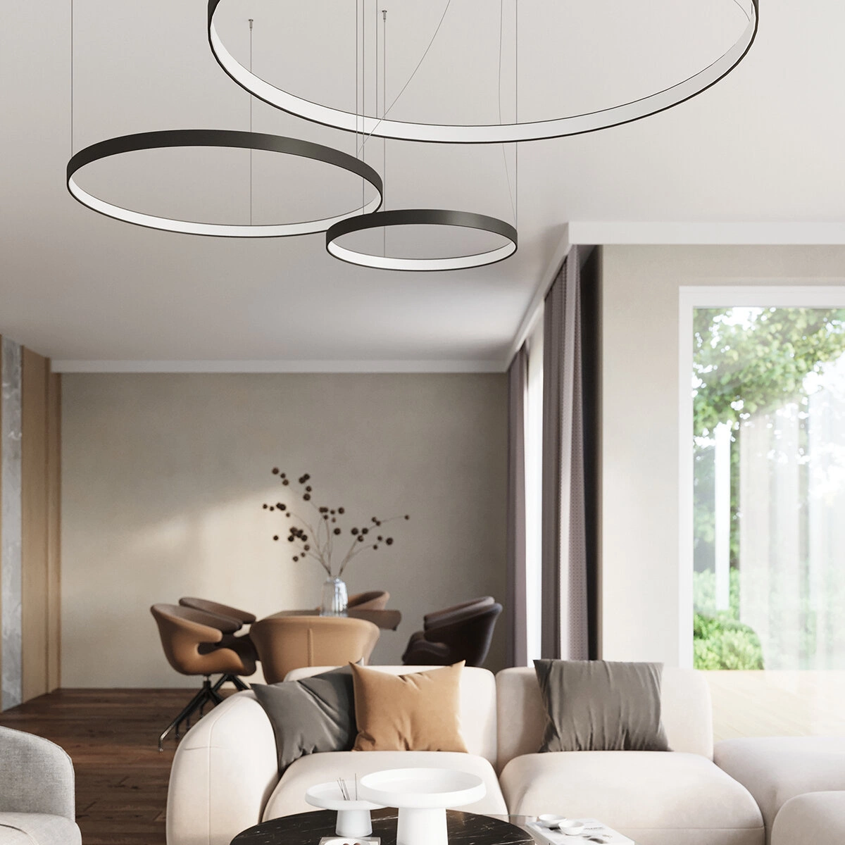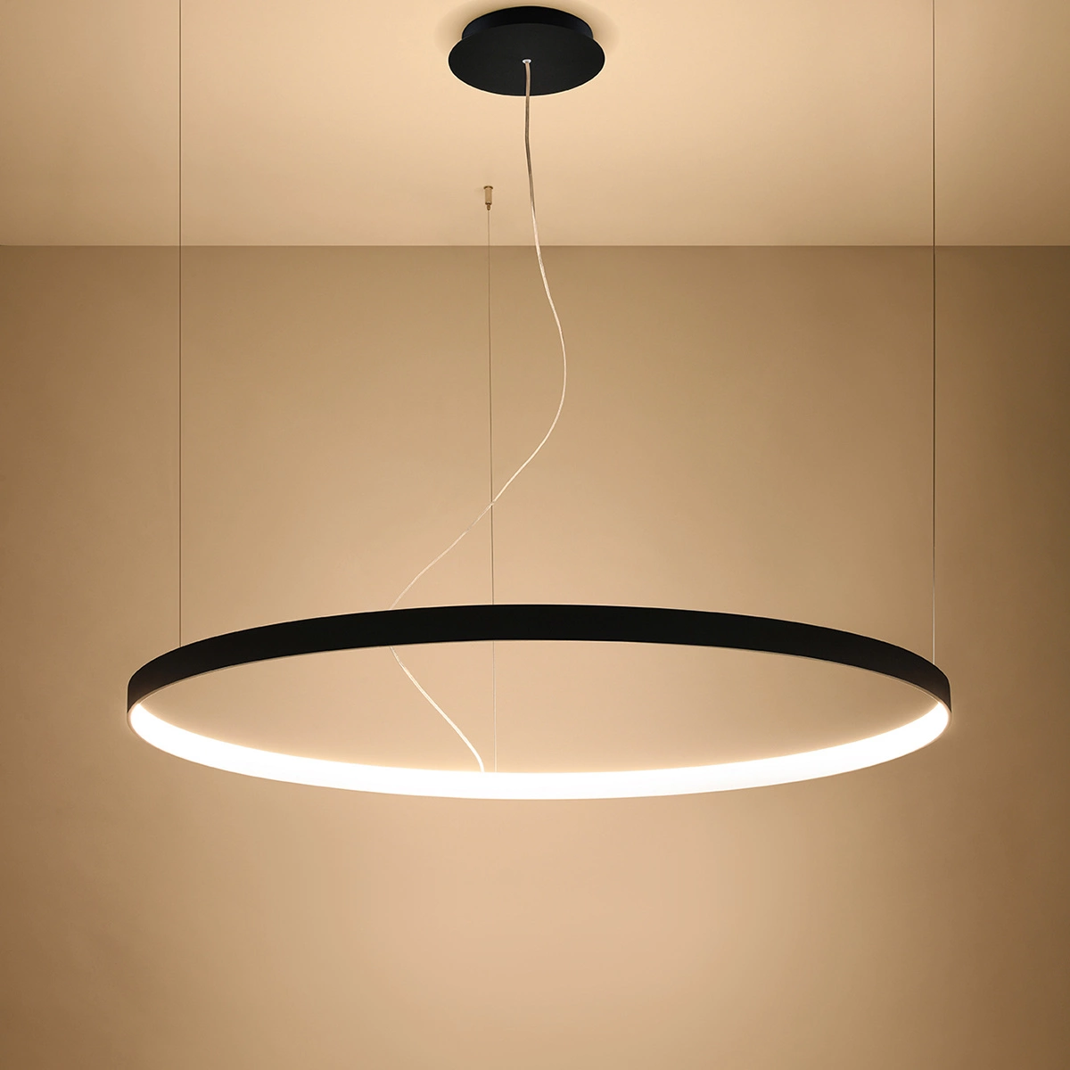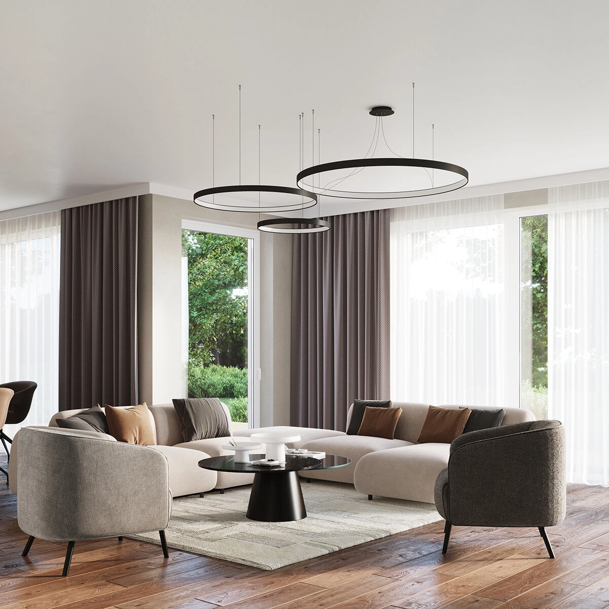 LED lustr RIO 110 černý od značky Thoro je ideální volbou pro ty, kteří hledají působivé a funkční osvětlení do moderních interiérů. Vyroben z odolné oceli v hluboké černé barvě, kombinuje industriální styl s minimalistickým designem. Velký průměr 110 cm a silný, energeticky úsporný LED zdroj světla (70W, teplá barva 3000K) zajistí dokonalé prosvětlení prostorného obývacího pokoje, jídelny nebo designové kuchyně, přičemž poskytuje příjemné, teplé světlo.