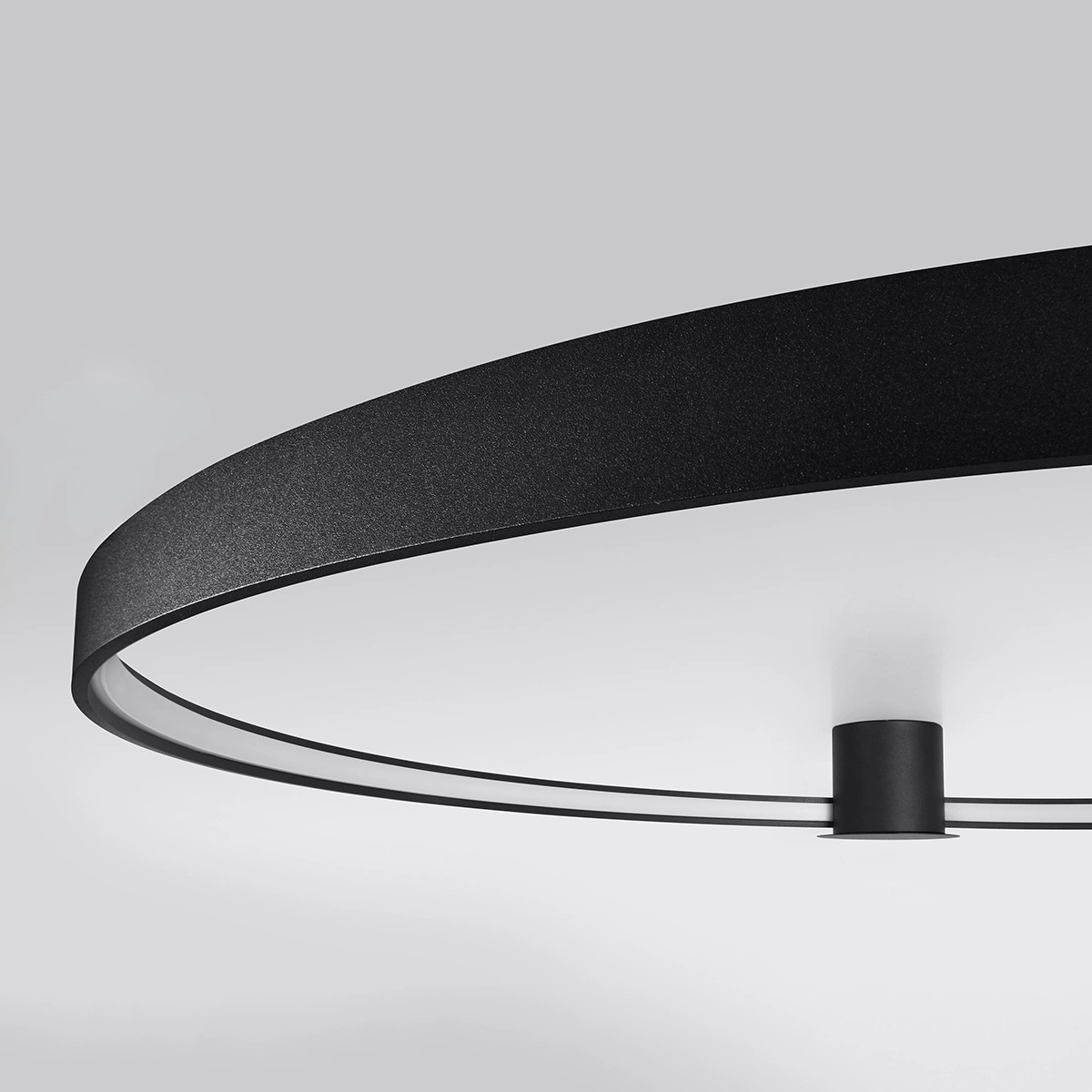 Stropní LED plafon Rio 55 od značky Thoro je moderní stropní svítidlo, které zaujme kulatým tvarem a elegantním, černým rámem z odolné oceli. Poskytuje efektivní, teplé LED světlo o výkonu 30W, ideální pro osvětlení obývacího pokoje, kuchyně i ložnice. Díky průměru 62 cm a nenápadné výšce 12,5 cm zajišťuje plafon rovnoměrné osvětlení a zároveň přináší minimalistický, výrazný prvek do moderních interiérů.