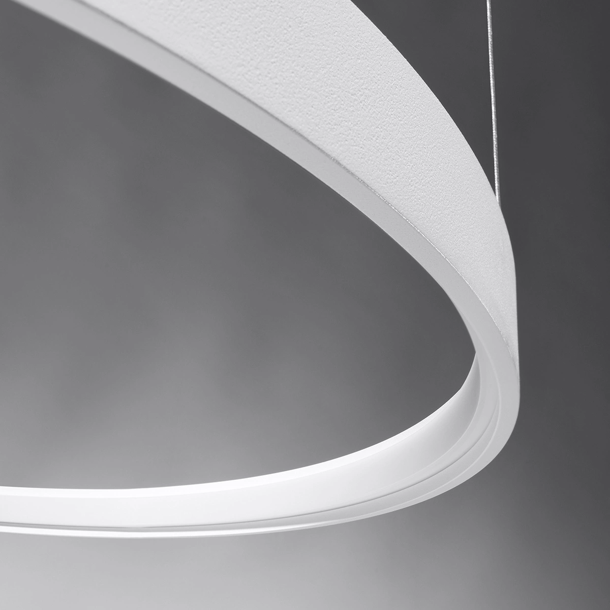 Díky působivým rozměrům a moderní LED technologii je lustr RIO 2 perfektní volbou jako lampa do obývacího pokoje, lustr nad jídelní stůl nebo závěsné svítidlo do kuchyně. Výšku lze nastavit až do 150 cm, což umožňuje přizpůsobit lustr různým výškám místností a aranžmá. Dvoubodové LED světlo poskytuje nejen vysoký jas, ale i příjemné, rovnoměrné rozptýlení světla – ideální pro společné večeře, rodinná setkání nebo relaxaci po práci.