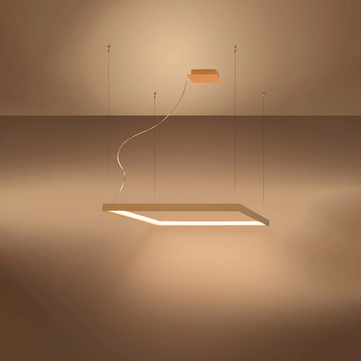Lustr Nelya je svítidlo, které velmi efektivně osvětlí prostor a zároveň je dekorativním a minimalistickým doplňkem. Čtvercový tvar svítidla působí dojmem, že je asketické a vznáší se ve vzduchu díky systému lan, která ho téměř neviditelně podpírají. Položka je k dispozici ve třech elegantních barvách: zlaté, bílé a černé. Díky svému industriálnímu designu se bude hodit do obývacích pokojů, ale také nad jídelní stůl nebo do předsíně. Dobře bude fungovat i jako doplněk do restaurace, hotelu nebo prostoru obchodu.
