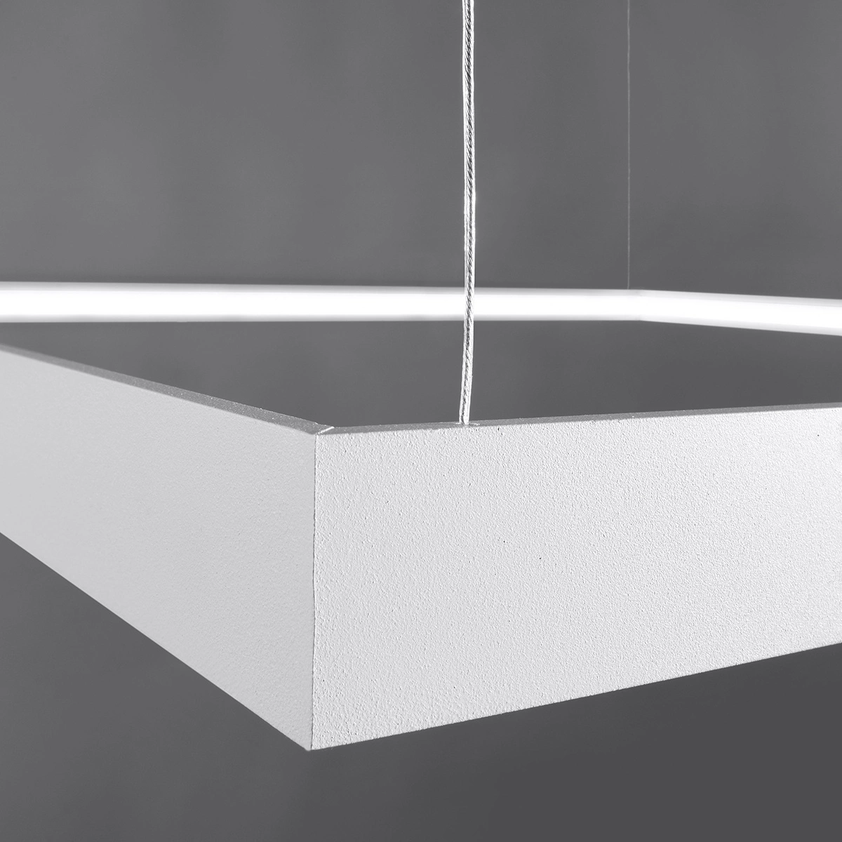 LED lustr Thoro Nelya je spojením moderního designu a funkčnosti, které potěší každého milovníka minimalistického stylu. Bílý, geometrický rám o působivé šířce 80 cm je vyroben z odolného hliníku a integrovaný LED zdroj zajišťuje rovnoměrné osvětlení interiéru. Tento industriální závěsný lustr je skvělou volbou jako hlavní stropní osvětlení do obývacího pokoje, ale perfektně vynikne také nad jídelním stolem nebo ve vzdušné vstupní hale.