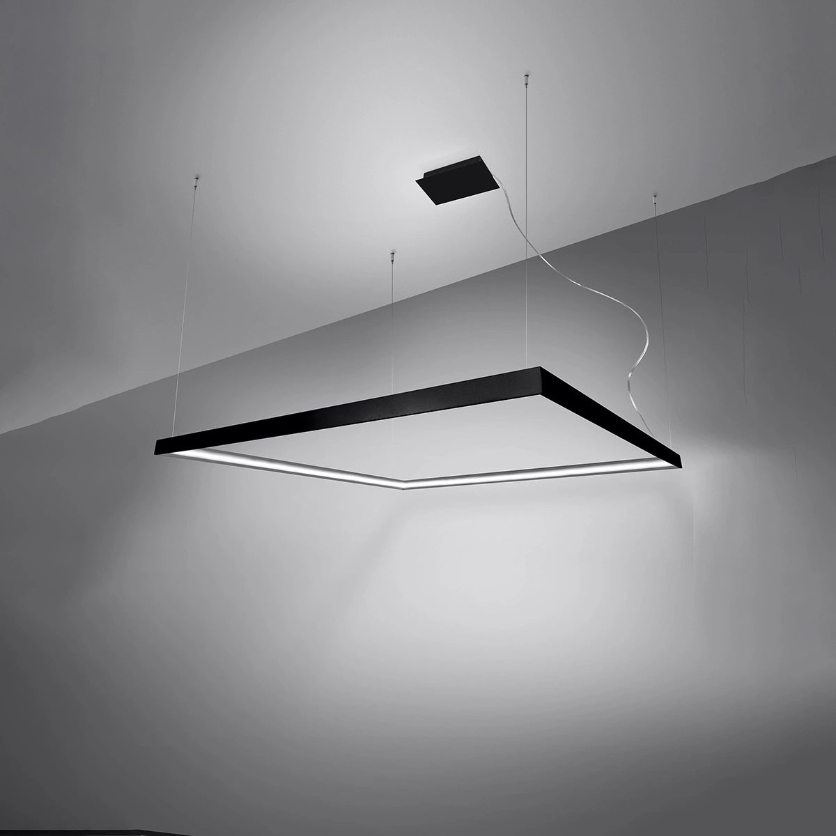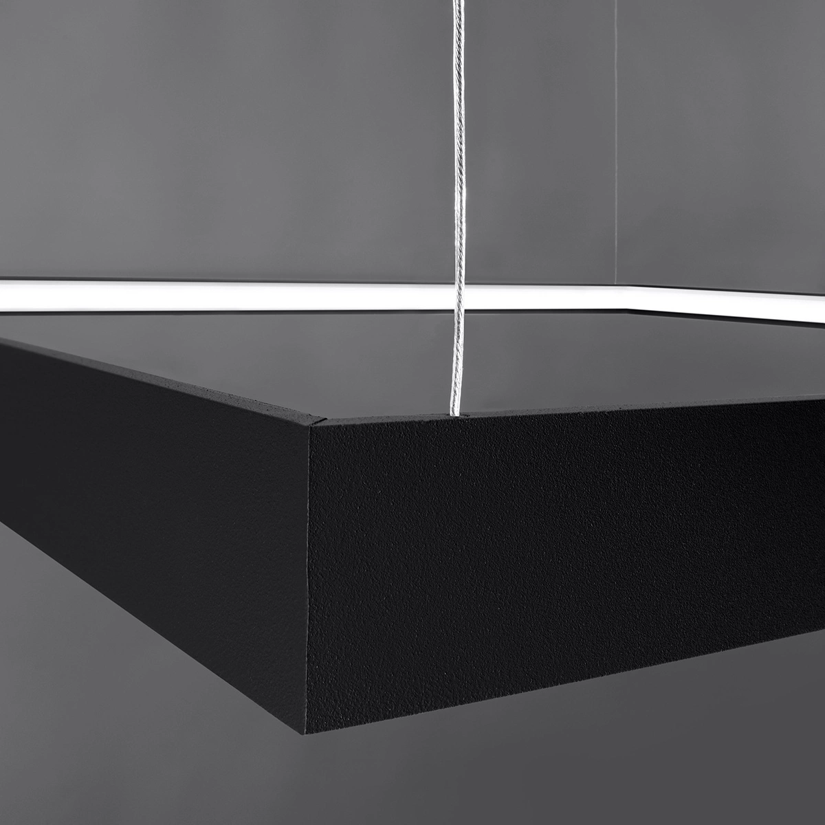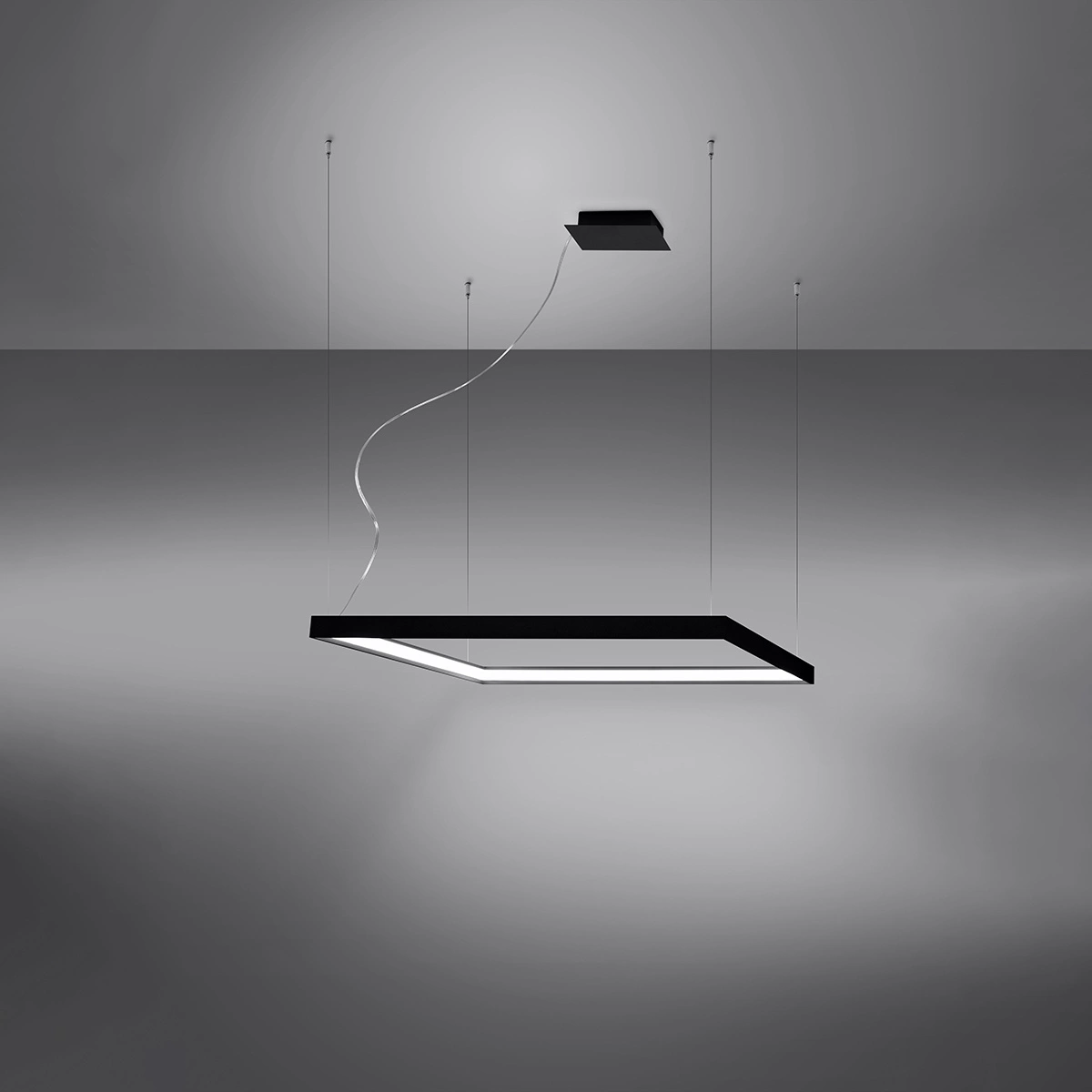 LED lustr Nelya M značky Thoro je moderní stropní svítidlo s působivou šířkou 80 cm, vyrobené z odolného hliníku v černé barvě. Jeho geometrický tvar a úsporný LED světelný zdroj zaručují, že skvěle poslouží jako lustr do obývacího pokoje, závěsná lampa nad jídelní stůl nebo svítidlo do kuchyně. Díky minimalistickému, loftovému designu a vysoké kvalitě zpracování tento model podtrhne charakter moderních interiérů.