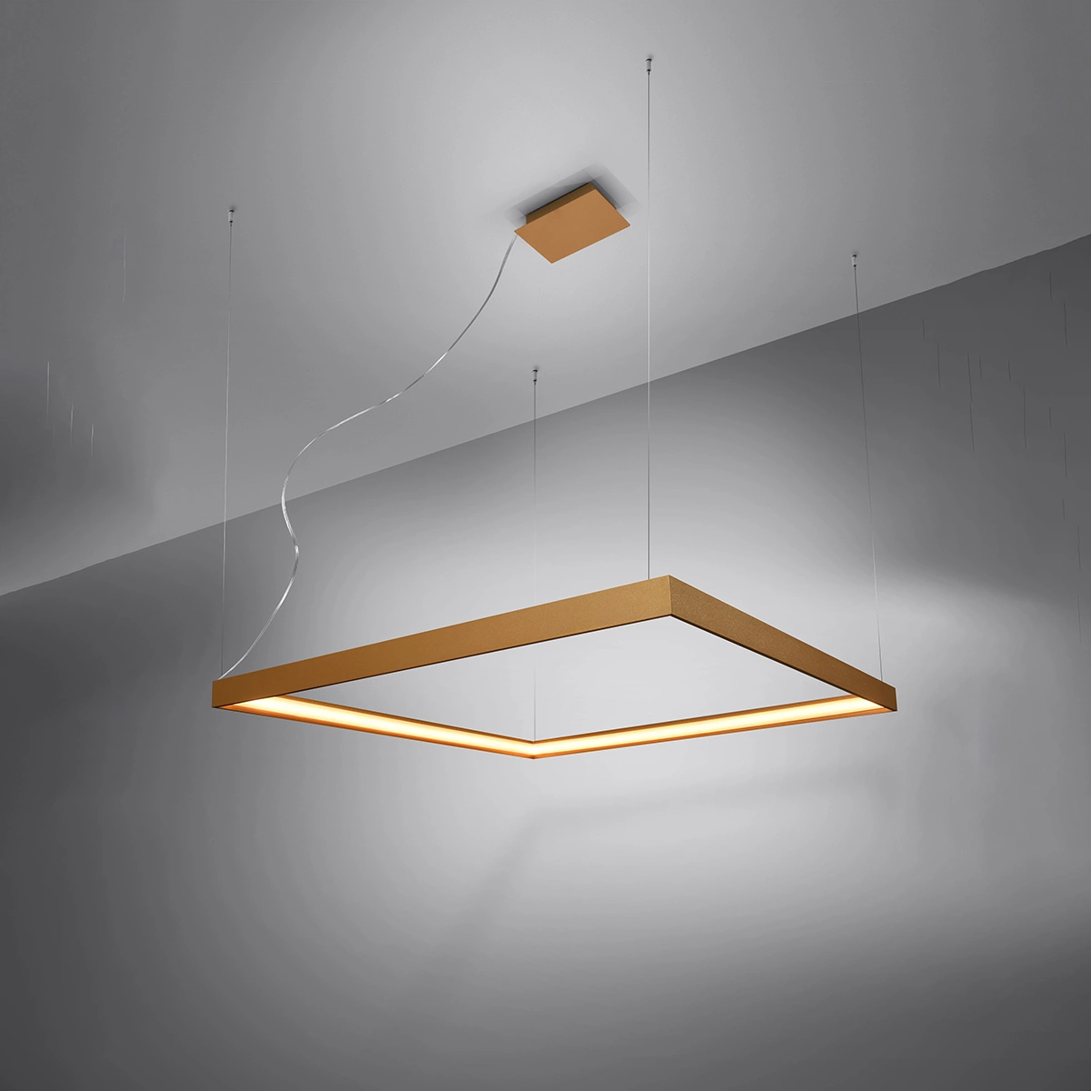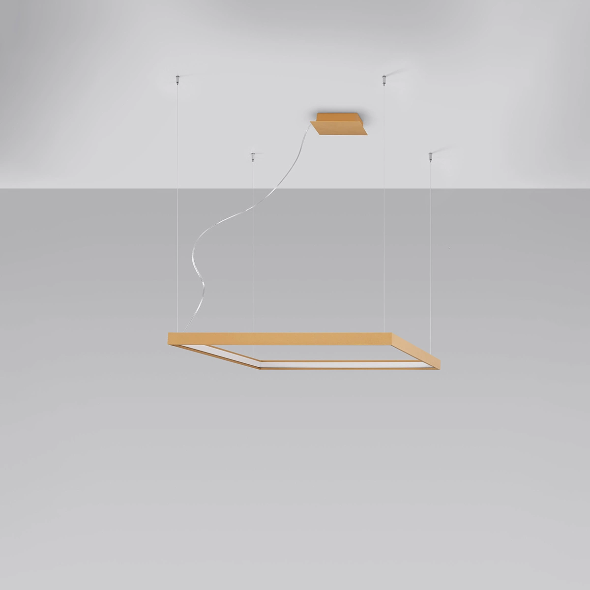 LED lustr Nelya M zlatý je mnohem více než jen klasické závěsné svítidlo. Jeho geometrická, čtvercová konstrukce nejen efektivně osvětluje prostor, ale stává se také výraznou dekorací stropu. Díky velké svítící ploše a integrovanému, energeticky úspornému LED modulu o výkonu 50W poskytuje Nelya rovnoměrné, příjemné světlo, které je perfektní jako hlavní osvětlení do obývacího pokoje, nad jídelní stůl nebo do reprezentativní části kuchyně.