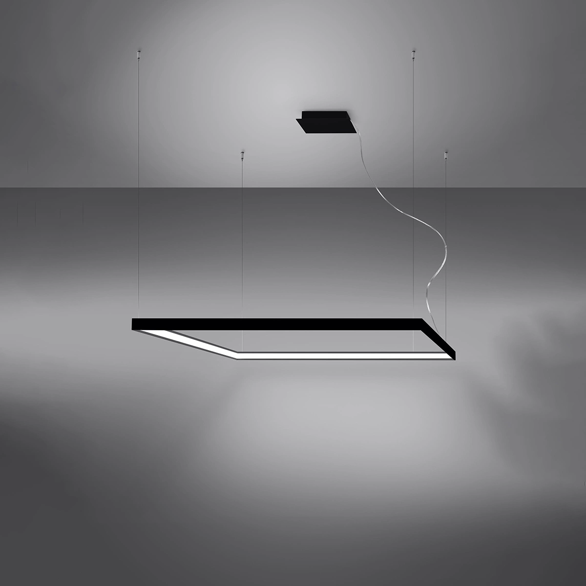 Díky svým impozantním rozměrům (šířka 110 cm, výška 150 cm) je lustr Nelya L perfektní volbou do otevřených prostor obývacích pokojů, nad jídelní stůl i jako osvětlení nad ostrůvek v moderní kuchyni. Zavěšení na tenkých lankách vytváří efekt lehkosti, zatímco černý hliník podtrhuje industriální charakter interiéru.