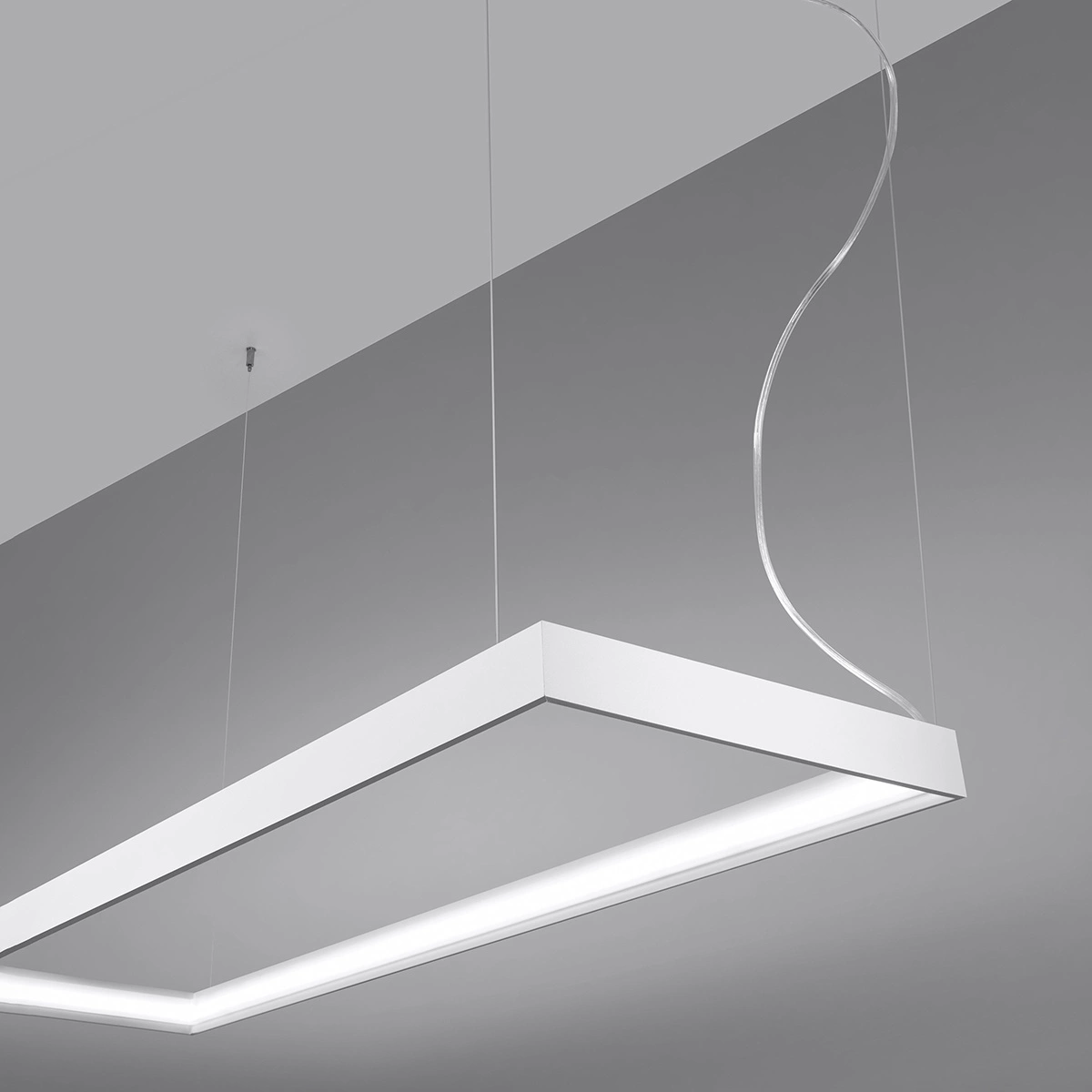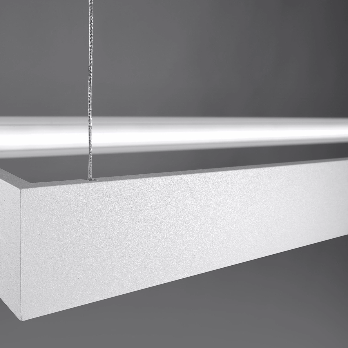 Návrh LED lustru Tuula M vás okouzlí jednoduchostí a strohou estetikou typickou pro industriální styl. Čtvercový rám a jemné zavěšení na tenkých lankách dodávají stropní lampě lehkost a dojem, že se vznáší v prostoru. Bílá barva přináší interiéru svěžest a skvěle ladí jak se světlými, tak kontrastními aranžmá. Tento moderní lustr se hodí do prostorného obývacího pokoje, nad velký jídelní stůl nebo do reprezentativní haly.