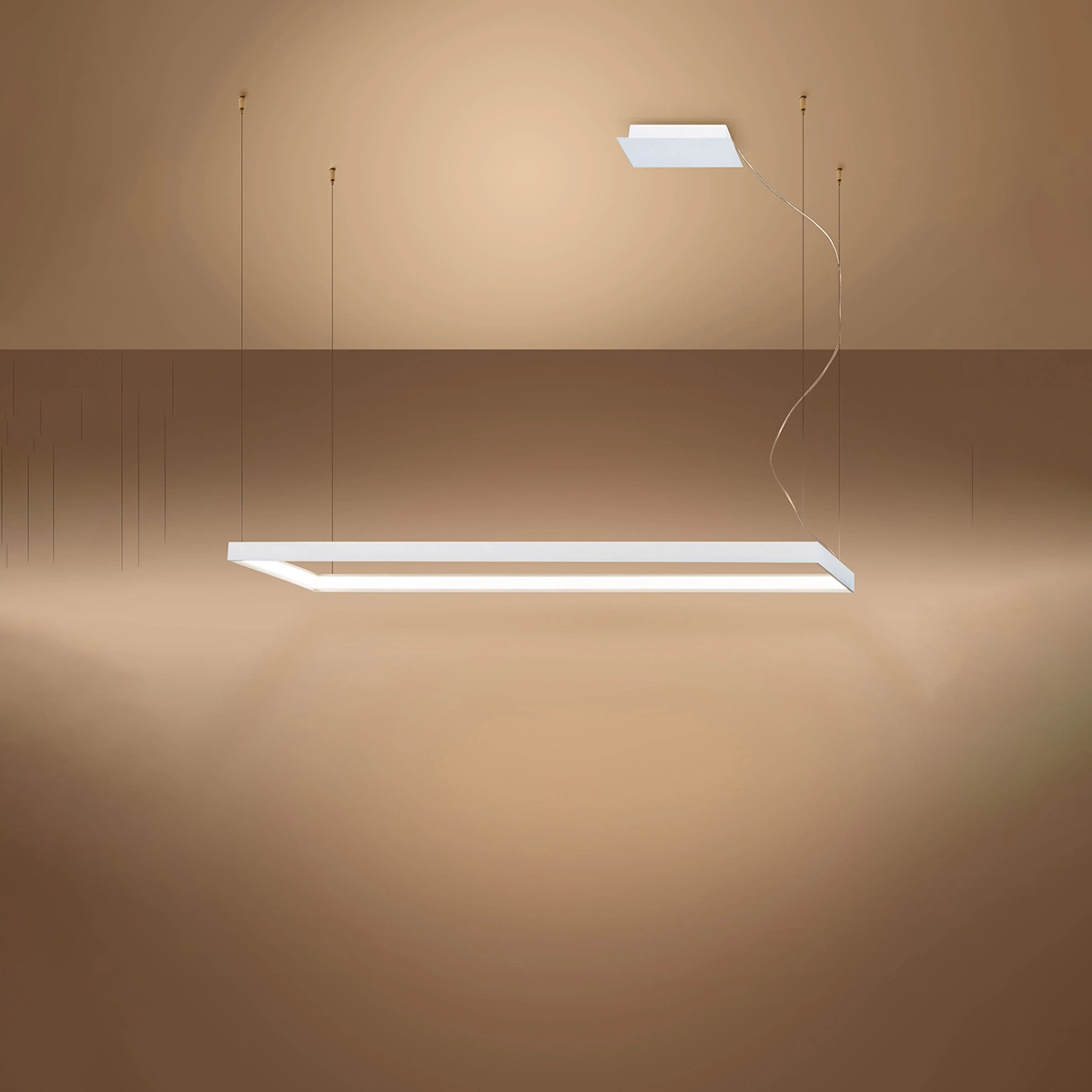 LED lustr Tuula L od značky Thoro je moderní stropní svítidlo s geometrickým, loftovým designem, vyrobené z odolného hliníku v elegantní bílé barvě. Tento model s působivou délkou 150 cm a šířkou 40 cm poskytuje široké a rovnoměrné osvětlení díky integrovanému, úspornému LED modulu o výkonu 50W a neutrální teplotě světla 3000K. Je to skvělá volba do prostorného obývacího pokoje, nad jídelní stůl nebo do moderní kuchyně, kde je důležitý výrazný design i funkčnost.