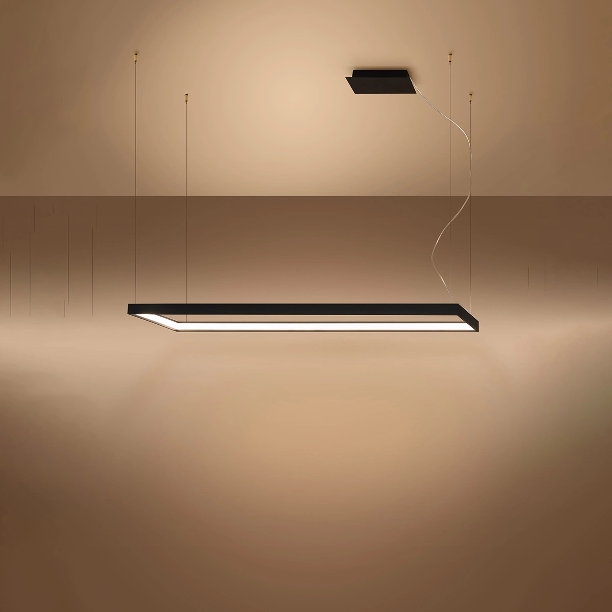 LED lustr Tuula L od značky Thoro je moderní stropní svítidlo v industriálním stylu s působivou délkou 150 cm. Vyrobeno z odolného hliníku v hluboké, matné černé barvě skvěle podtrhne charakter prostorných interiérů. Integrovaný LED zdroj světla 50W s teplou barvou 3000K zajišťuje rovnoměrné osvětlení a maximální úsporu energie. Tento výrazný závěsný lustr byl navržený pro obývací pokoj, jídelnu nebo nad velký stůl, kde záleží jak na designu, tak i na funkčnosti.