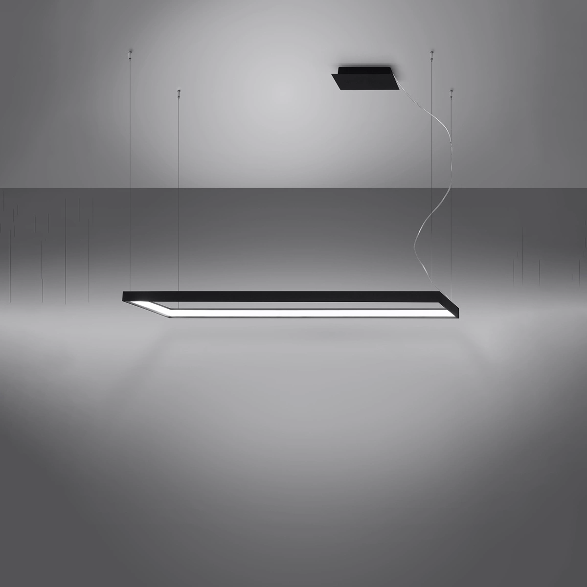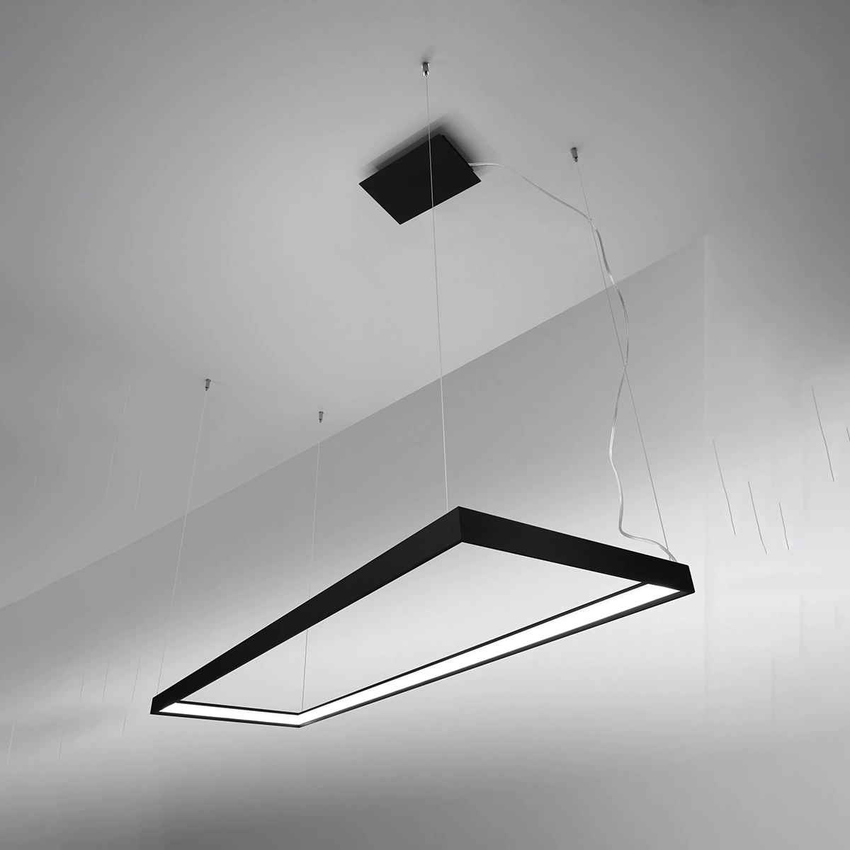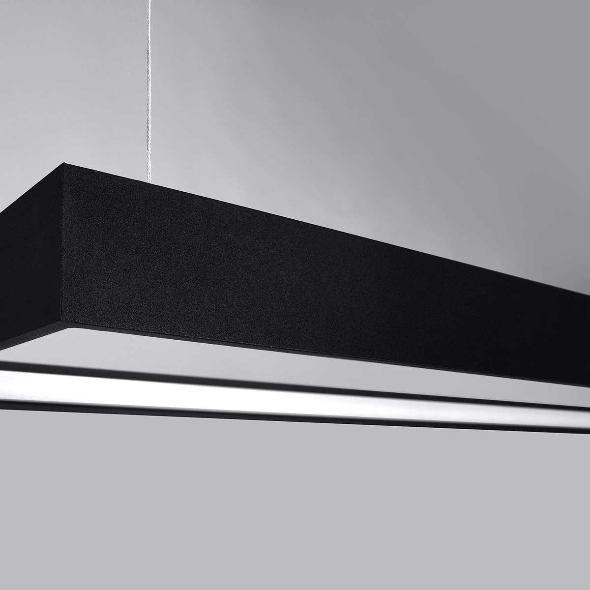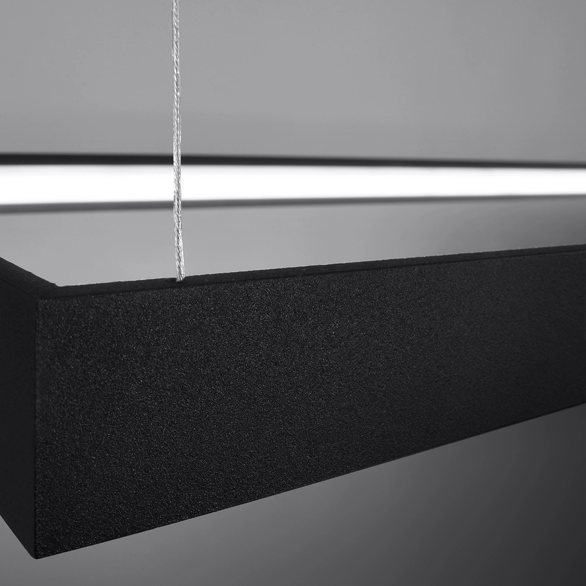 LED lustr Tuula L od značky Thoro je moderní stropní svítidlo s výrazným industriálním charakterem. Vyrobený z odolného hliníku v hluboké, matné černé barvě, zaujme geometrickým tvarem s působivými rozměry 40×130 cm a nastavitelnou výškou až do 150 cm. Integrovaný, energeticky úsporný LED zdroj světla (50W, teplota 4000K) poskytuje rovnoměrné osvětlení prostoru, což činí lustr ideální volbou do obývacího pokoje, jídelny nebo nad stůl v moderních, loftových interiérech.