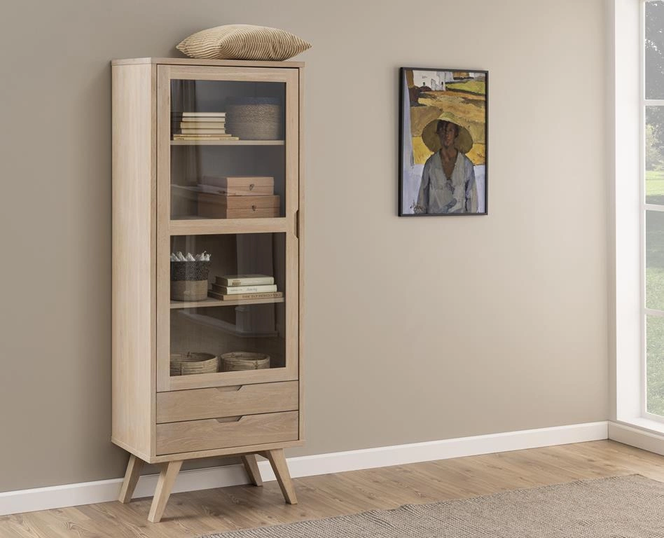 Dřevěná vitrína do obýváku se zásuvkami A-line Actona bělený dub 190 cm