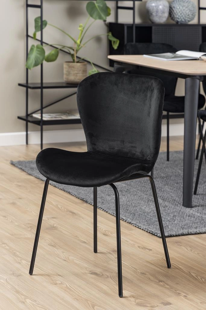 Pevná základna židle Batilda je vyrobena z černého práškově lakovaného kovu. Tato konstrukce zajišťuje stabilitu při používání a odolnost vůči mechanickému poškození. Židle má také čalouněný sedák ze sametové látky, navíc se silnějším lemem, který vypadá velmi působivě. Použitou látkou je látka VIC černá 69AC. V kolekci židlí Batilda najdete také čalouněné nebo prošívané židle, stejně jako lounge křesla a kancelářské židle. Výrobce se postaral o to, aby si každý našel něco pro sebe. Díky různým barvám a materiálům je možné čalouněné židle Batilda použít jako židle do jídelny, obývacího pokoje i pokoje pro teenagery. Dobře poslouží také jako židle do čekárny nebo pracovny.
