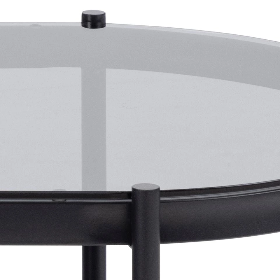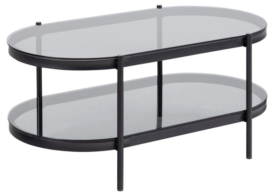 Konferenční stolek Bayonne oválný skleněný černý loftový s policí do obývacího pokoje od značky Actona je designový kus nábytku, který skvěle podtrhne moderní charakter vašeho interiéru. Oválná deska z kouřového skla o rozměrech 95x50 cm nabízí praktický prostor pro každodenní rituály – od ranní kávy až po večerní posezení s přáteli. Další skleněná police usnadní organizaci, zatímco pevná černá konstrukce v loftovém stylu zaručuje odolnost a výrazný vizuální efekt.