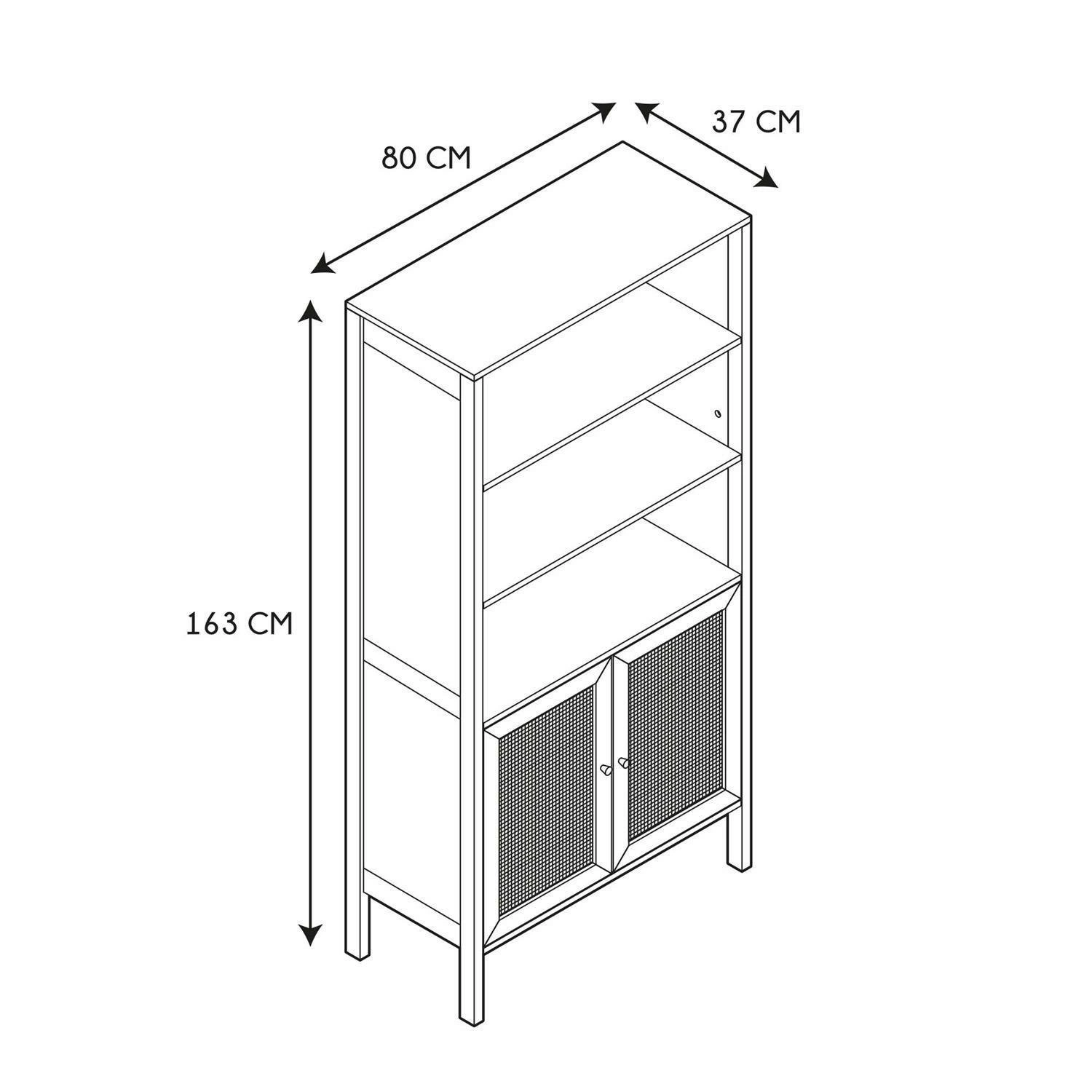 Knihovna Bali byla navržena pro ty, kteří oceňují pořádek a estetiku. Díky třem prostorným policím snadno vystavíte oblíbené knihy, dekorace nebo pokojové rostliny. Pod nimi se nachází uzavíratelná skříňka se dvěma páry dvířek, za kterými můžete mít po ruce věci, které nechcete mít na očích. Promyšlená hloubka 37 cm umožňuje umístit knihovnu i do užších prostor, a přitom zachovat dostatek úložného místa.