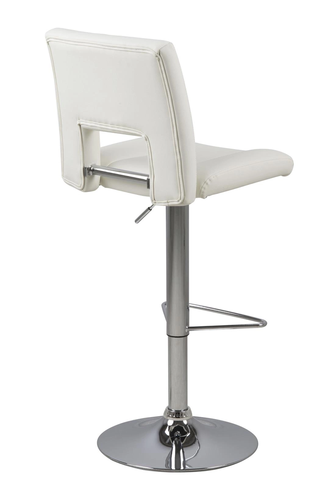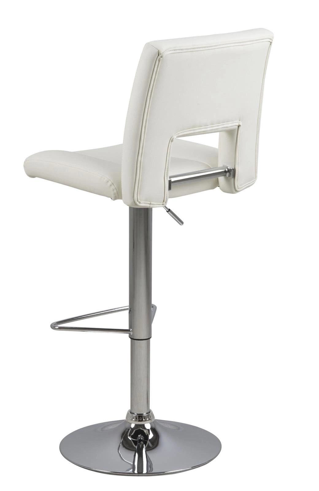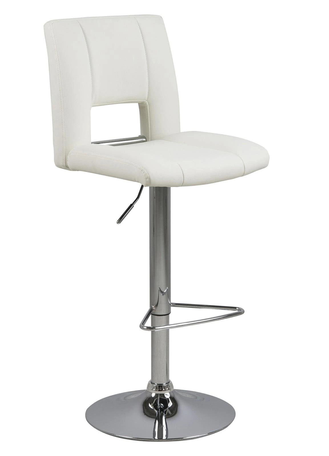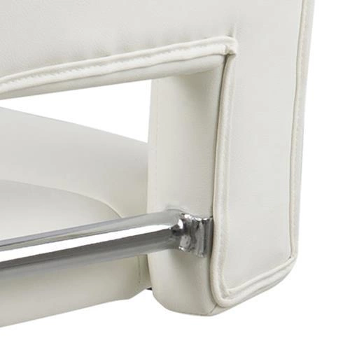 Barová židle s opěradlem se v poslední době stala nejoblíbenějším kusem nábytku pro kuchyňský ostrůvek. Není divu, židle barováy kromě funkčnosti dodávají interiéru dobrý styl a místnostem moderní nádech. Židle barová Sylvia je mnoho výhod v jednom produktu. Jeho sedák s vysokým opěradlem je vyroben z polyuretanové pěny, která zajišťuje pružnost a zabraňuje deformaci. Povrch je potažen bílou látkou WT1 se vzhledem PU kůže. Základnu tvoří dlouhá štíhlá noha s chromovanou povrchovou úpravou. Je zakončen plochou deskou, která zajišťuje stabilitu. Velkou výhodou je možnost nastavení výšky sedadla pomocí automatického systému. Kromě toho má židle barová také opěrku nohou, která zvyšuje pohodlí při sezení u vysoké desky stolu