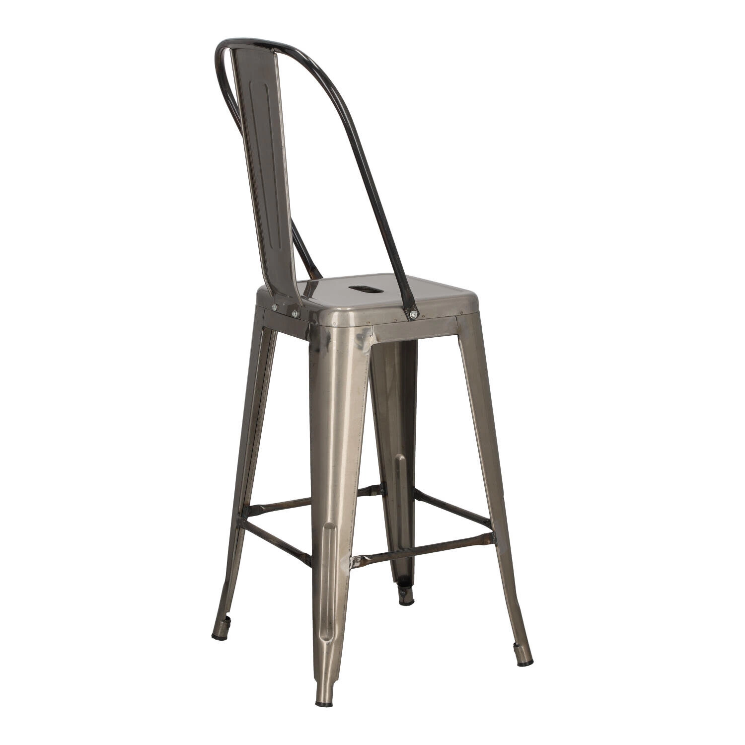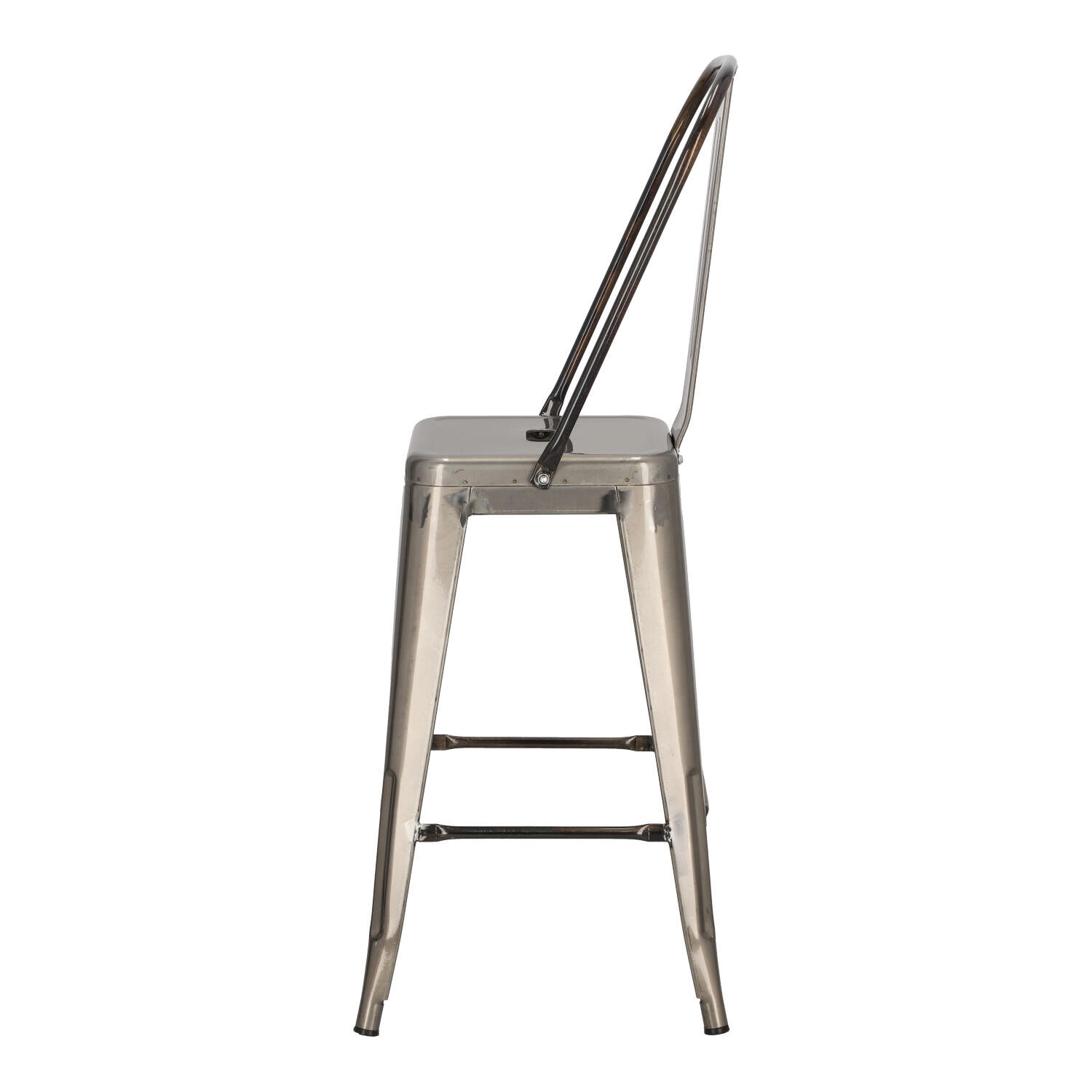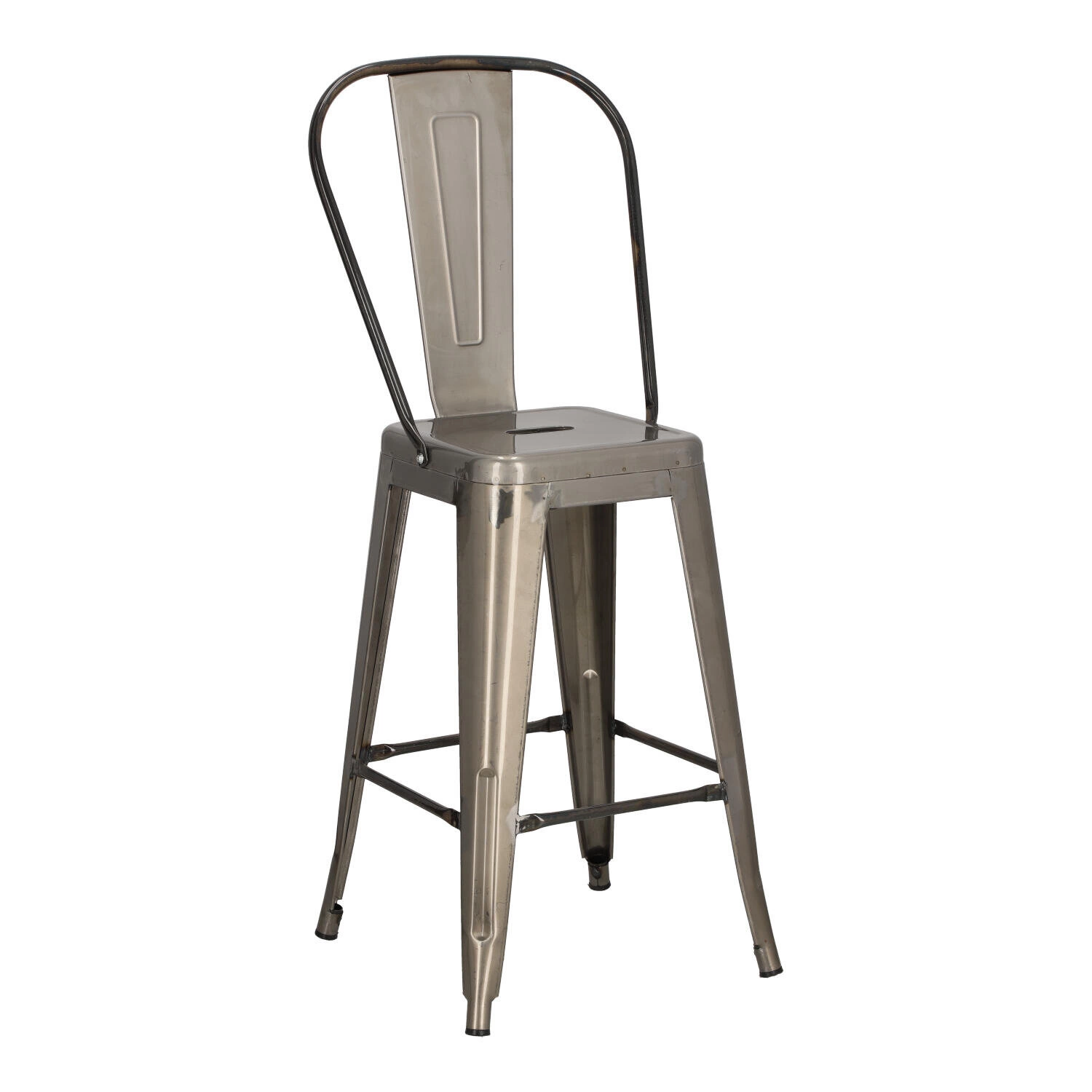 Barová židle Paris Back 66 cm kovová s opěrkou industriální ke kuchyňskému ostrůvku stříbrná D2.DESIGN