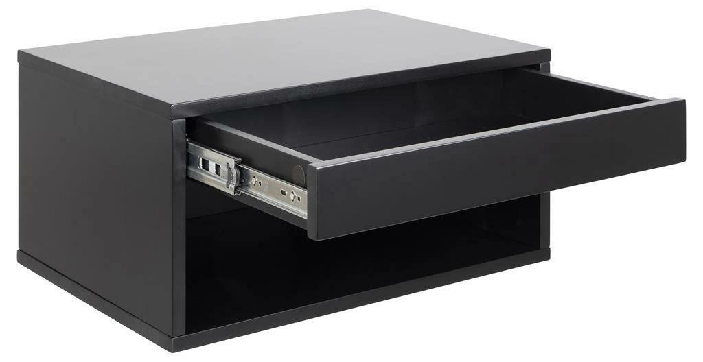 Závěsný noční stolek černý 50 cm s zásuvkou minimalistický Actona Cholet do ložnice