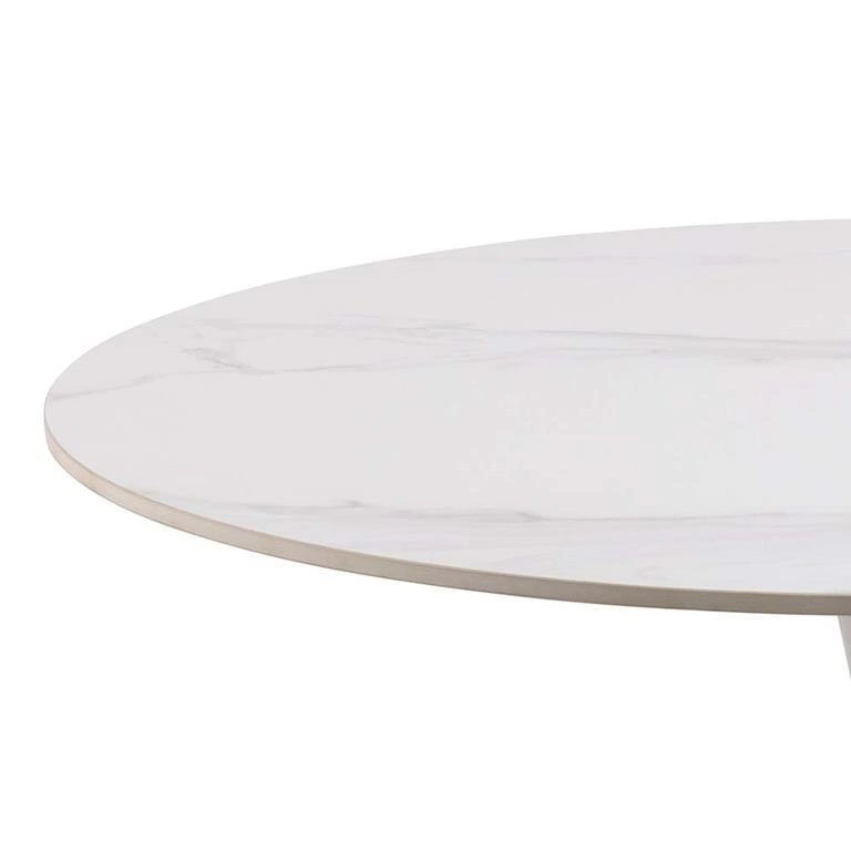 Malta má velkou kulatou desku pr.ednice 90 cm, vyrobenou z keramické desky. Deska je pokryta oleinem imitujícím mramor. Úžasný design, precizní zpracování a robustnost patří k mnoha přednostem tohoto krásného kusu nábytku. Použití keramické desky chrání stůl před vysokými teplotami. Můžete na něm nechat horký šálek kávy, aniž byste se obávali poškození výjimečného kusu nábytku. Noha ve tvaru trubky je zakončena kulatým prvkem, díky němuž je stůl mimořádně stabilní. Malta je k dispozici ve dvou barevných variantách: černé a bílé. Vyberte si sami, který z nich bude lépe ladit s vaším interiérem!