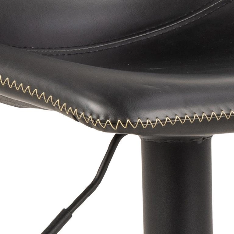 Barová židle Oregon je určena pro ty, kteří oceňují jedinečný charakter interiérů. Inspirována vintage estetikou, zaujme stylovým prošíváním a strukturou černé ekokůže, která věrně imituje přírodní kůži s lehce patinovaným vzhledem. Matná základna z černého kovu podtrhuje industriální nádech a dodává celku výjimečný styl, ideální jak do domácí kuchyně, tak i atmosférické jídelny.