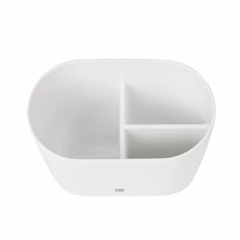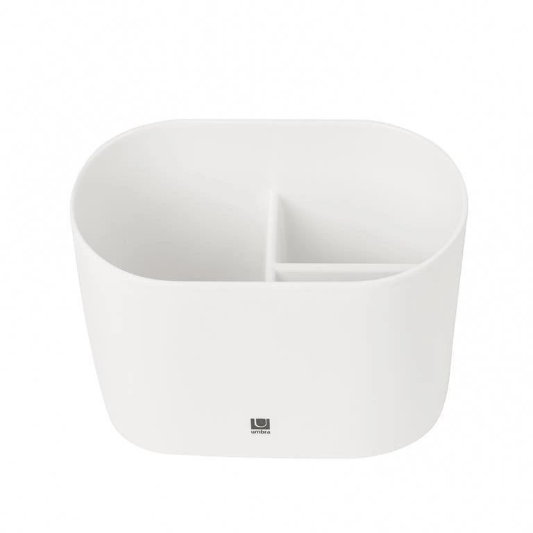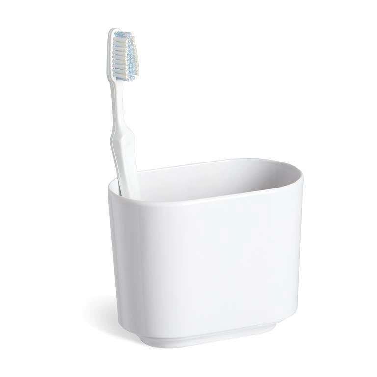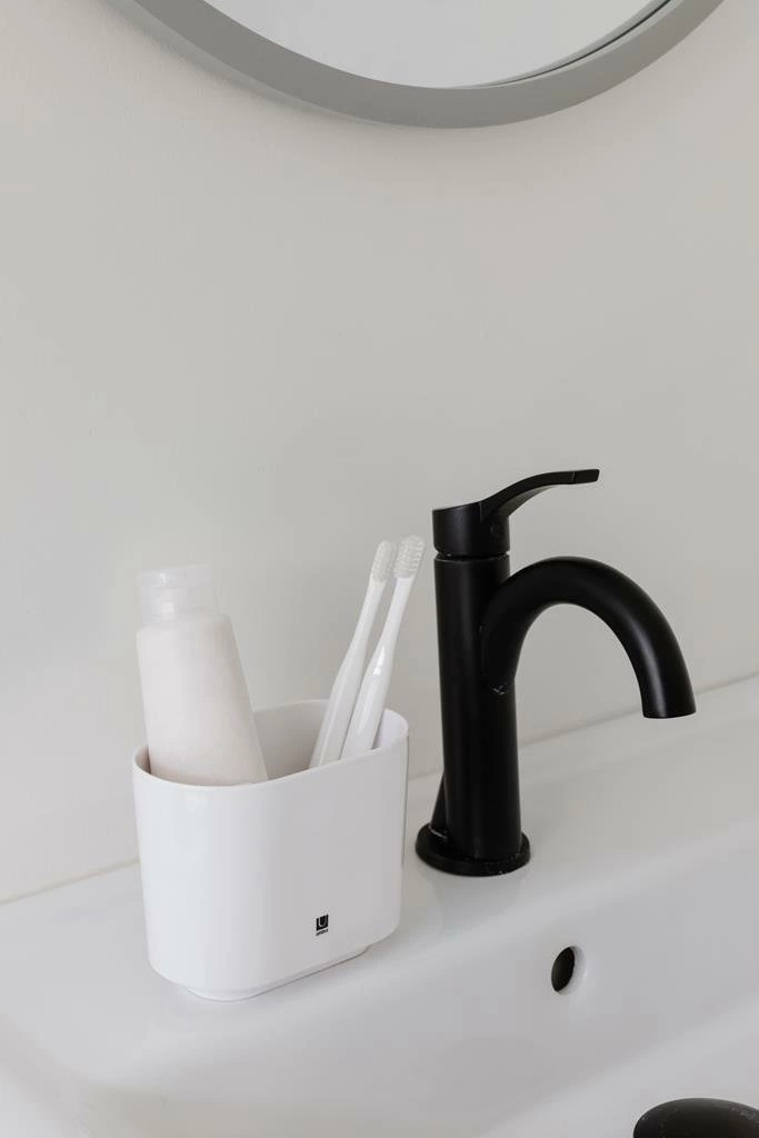 - Promyšlený tvar – pohodlně pojme několik kartáčků a zubní pastu, skvěle se hodí i jako stojánek na elektrický kartáček
