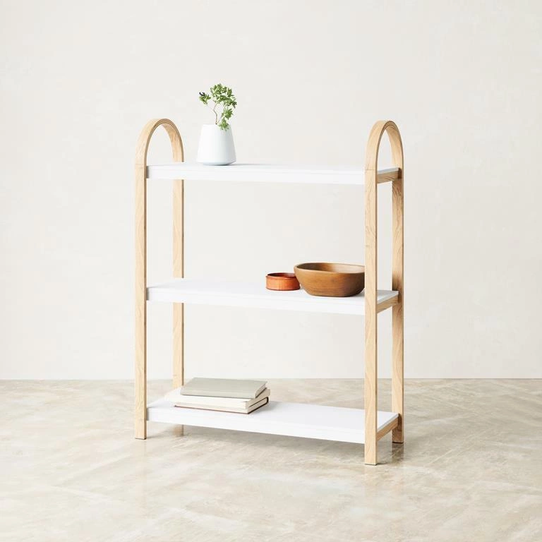 Knihovna Bellwood značky Umbra spojuje moderní funkčnost s nadčasovou estetikou skandinávského designu. Je vyrobená z bíle lakovaného dřeva a nabízí tři široké police o hloubce 25 cm, což představuje promyšlené řešení pro uložení a vystavení knih, dekorací nebo rostlin. Díky kompaktním rozměrům (výška 90 cm, šířka 72 cm) se perfektně hodí jak do prostorného obývacího pokoje, tak i do menšího interiéru.