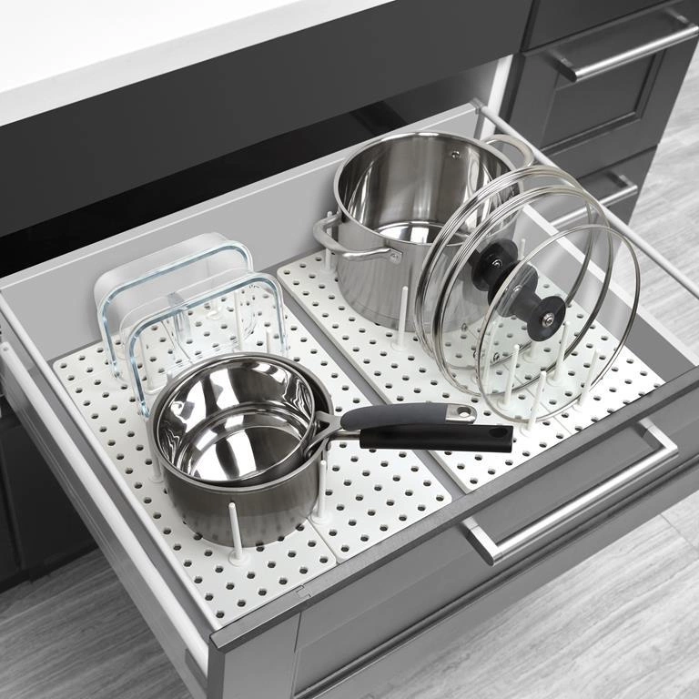 Odkapávač Peggy vám pomůže nejen uspořádat nádobí, ale také jej chránit před poškrábáním a poškozením. Díky nastavitelným částem snadno změníte délku organizéru – i pro větší zásuvky nebo pracovní desky. Toto řešení oceníte zejména v menších kuchyních, kde je každý centimetr místa důležitý.