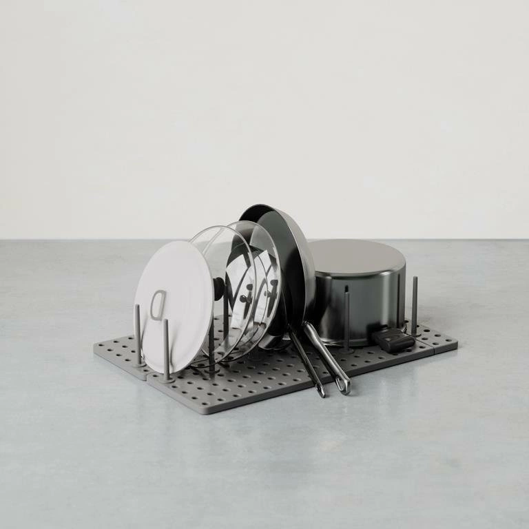 Zapomeňte na nepořádek v zásuvkách – odkapávač na nádobí Umbra Peggy umožňuje pohodlné uložení talířů, poklic, misek či hrnců. Modulární konstrukce zaručuje volné uspořádání přihrádek, takže každé nádobí najde své místo. Díky tomu bude každodenní používání kuchyně mnohem pohodlnější a efektivnější.