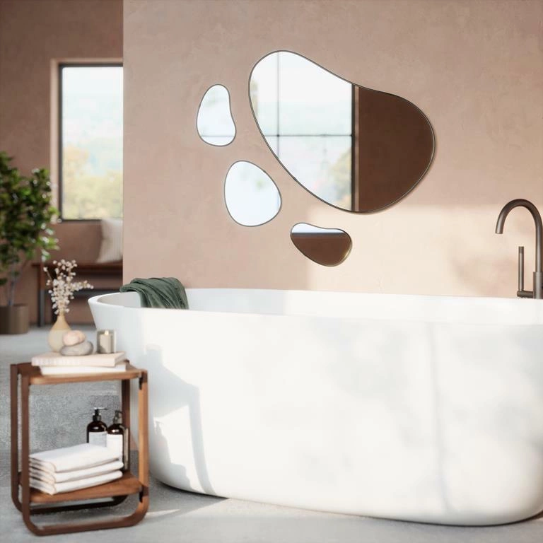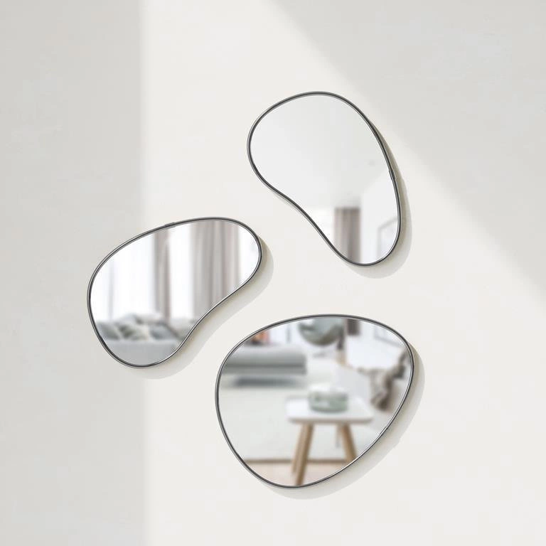Tři samostatné prvky dávají naprostou volnost při vytváření vlastních sestav a nástěnných galerií. Zrcadla lze zavěsit svisle i vodorovně a jejich asymetrické tvary skvěle ladí s dalšími dekoracemi na stěně. Také je to skvělý tip na dárek – univerzální a zároveň originální, vhodný do různých stylů moderních interiérů.
