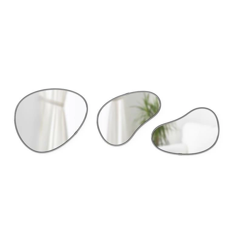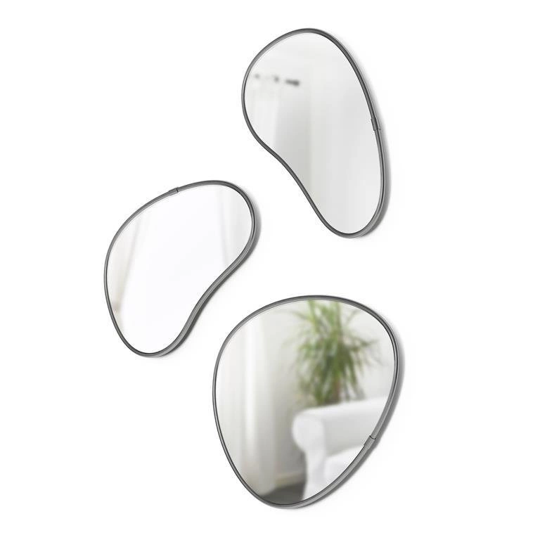 Sada 3 asymetrických zrcadel Hubba Pebble Umbra do předsíně v kovovém rámu