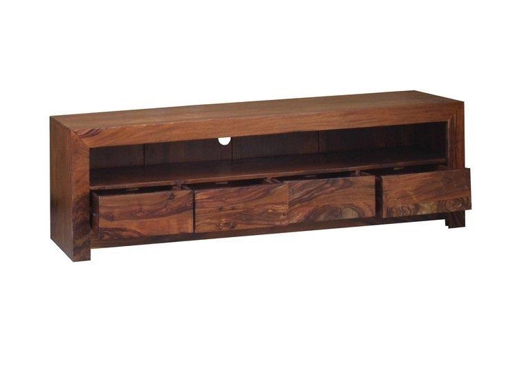 tV skříňka Minimalistický design se čtyřmi zásuvkami bez úchytek. Tento kus nábytku se bude skvěle hodit do obývacího pokoje zařízeného v industriálním stylu, ale stejně dobře se uplatní i v minimalistickém, klasickém pokoji, kterému chceme dodat nádech elegance.