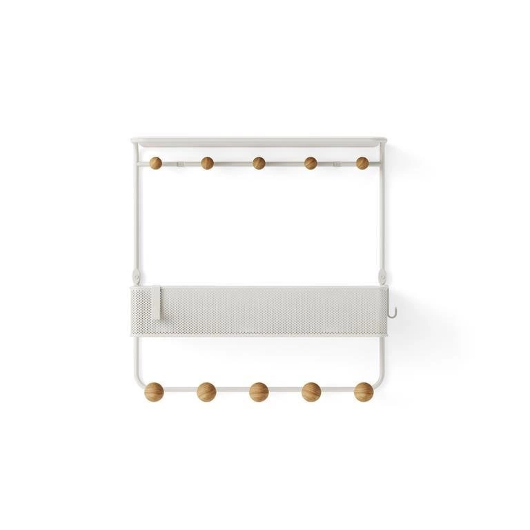 Nástěnná police s háčky Estique Umbra je moderním a funkčním doplňkem do předsíně, vyrobeným z kombinace kovu a dřeva v elegantním bílém provedení. Kompaktní rozměry – 32 cm na výšku, 31 cm na šířku a 10 cm do hloubky – zajišťují nejen skvělou organizaci prostoru, ale také vnáší svěží akcent do každého interiéru. Police je navržena pro uložení klíčů, drobností a každodenního oblečení, takže spojuje moderní design s praktickým využitím v běžném životě.
