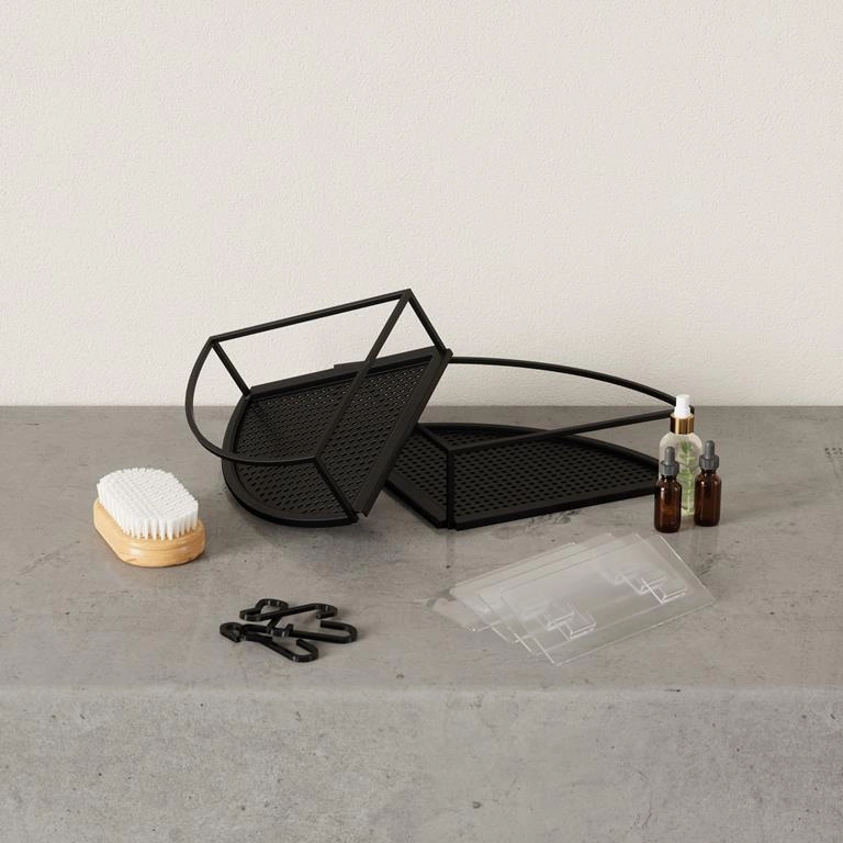Rohová koupelnová police Cubiko od značky Umbra je ideální volbou pro ty, kteří oceňují jednoduchost a praktičnost. Její industriální, geometrický design v černé barvě skvěle doplňuje moderní interiéry a dodává jim elegantní vzhled. Kovová konstrukce zaručuje dlouhou životnost a odolnost vůči vlhkosti, takže je police perfektní volbou do sprchy, nad vanu nebo k umyvadlu.