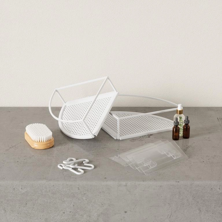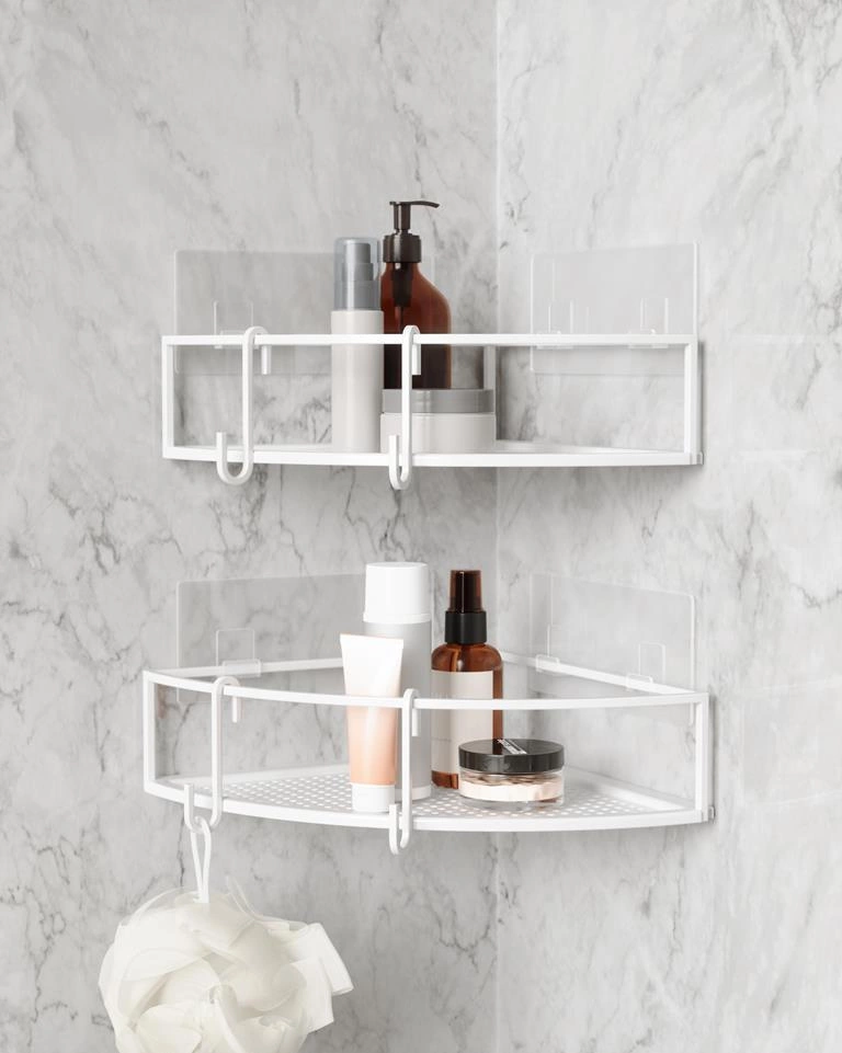 Koupelnová rohová police Cubiko Umbra je ideálním řešením pro ty, kteří hledají praktický a moderní způsob ukládání v sprchovém koutě nebo u vany. Dva bílé kovové moduly o rozměrech 23×23×8 cm umožňují snadný přístup k nejdůležitějším kosmetickým přípravkům a doplňkům, přičemž instalace nevyžaduje vrtání – stačí využít přiložené samolepicí prvky. Minimalistický design perfektně zapadne jak do moderních, tak industriálních koupelen.
