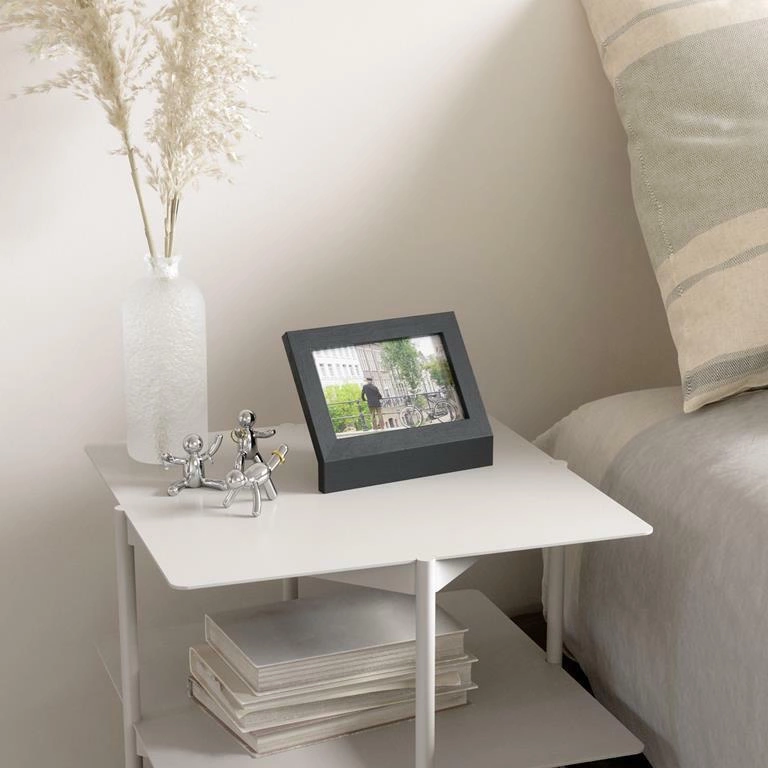 Elegantní a esteticky provedený - to je fotorámeček Podium. Je vyroben ze dřeva a upoutá pozornost svým zajímavým tvarem v moderním stylu. Rámeček zbavený zbytečných ozdob bude ideálním doplňkem interiérů, ve kterých vládne minimalismus. Je v něm místo na fotografii o rozměrech 10 × 15 cm ve vodorovné poloze, takže v něm můžete zvěčnit své nejdůležitější vzpomínky. Fotorámeček Podium, který se vyznačuje ušlechtilou dřevěnou konstrukcí, se bude skvěle vyjímat na nočním stolku, psacím stole nebo konzole v předsíni.