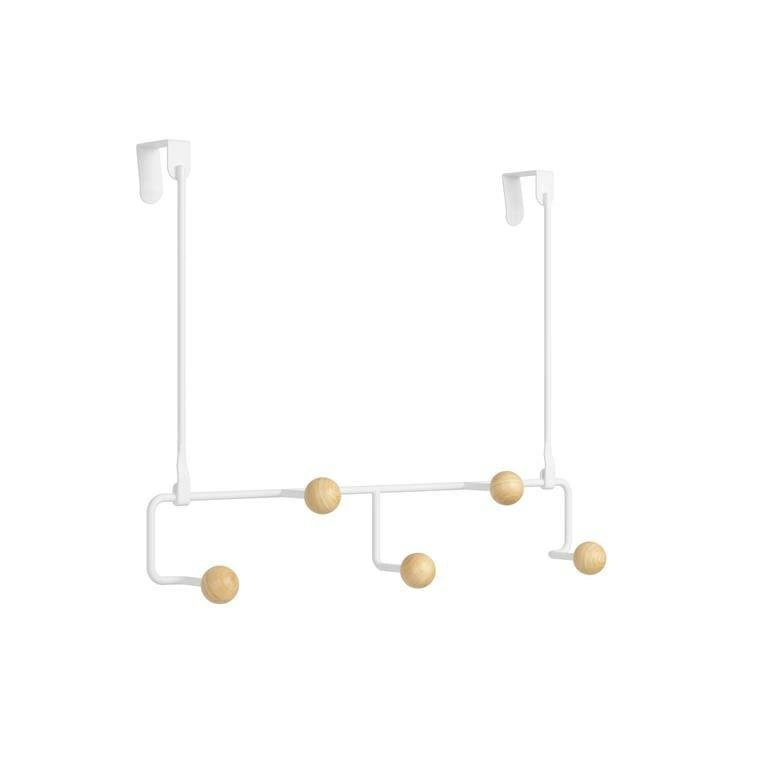 Věšák na dveře Estique od značky Umbra je praktický organizér do předsíně i koupelny, který spojuje funkčnost s moderním designem. Vyrobený z kovu a dřeva v bílé barvě nabízí pět pevných háčků, díky nimž získáte další místo na oblečení, ručníky nebo tašky. Kompaktní rozměry – výška 30 cm, šířka 39 cm a hloubka 10 cm – zaručují, že věšák skvěle zapadne i do menších prostor a pomůže udržet pořádek bez nutnosti montáže klasických nástěnných věšáků.