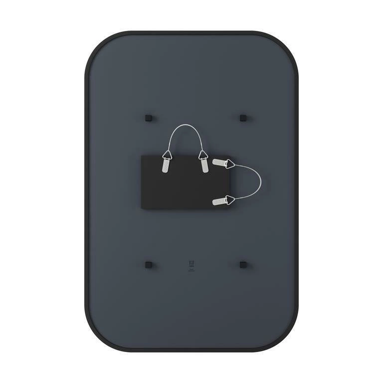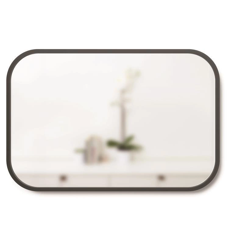 Obdélníkové zrcadlo Hub od značky Umbra je moderním prvkem do každého interiéru, který spojuje minimalistický design s praktickou funkčností. Pevná skleněná plocha o rozměrech 91×61 cm je zasazena do matného černého rámu s pružnými gumovými detaily, jež chrání hrany a zvýrazňují styl zrcadla. Model Hub je ideální volbou jak jako zrcadlo do předsíně, tak i jako zrcadlo do koupelny – nabízí odolnost i snadnou montáž na stěnu ve vertikální nebo horizontální poloze.