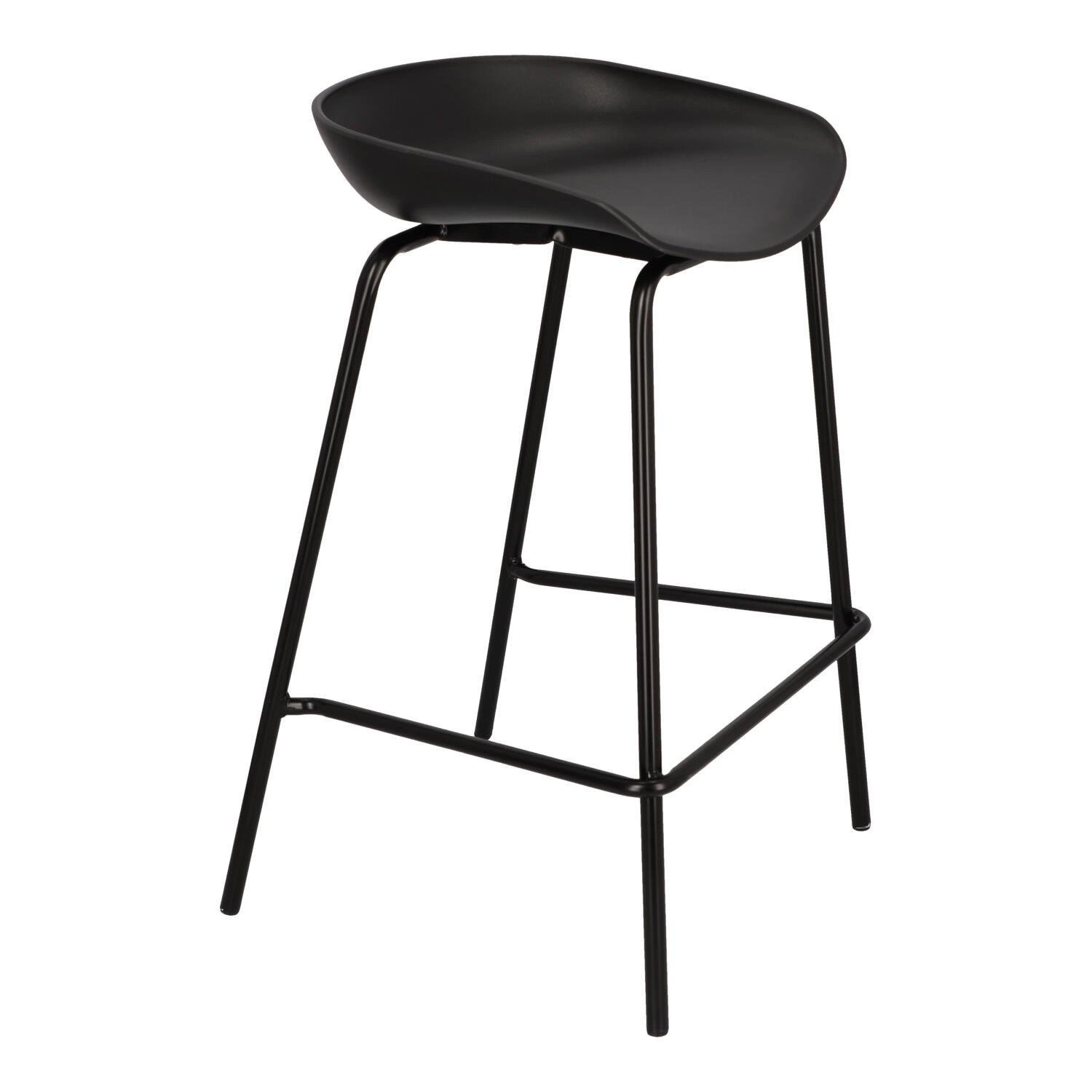 Hoker Grego černý 65 cm od značky Intesi je moderní barová stolička bez opěradla, navržená pro kuchyně, kuchyňské ostrůvky a jídelny zařízené v loftovém stylu. Vyniká minimalistickým designem, černým polomatným povrchem a pevnou konstrukcí na čtyřech kovových nohách. Sedák ve výšce 65 cm je vyroben z odolného plastu, což zajišťuje pohodlí i snadnou údržbu.